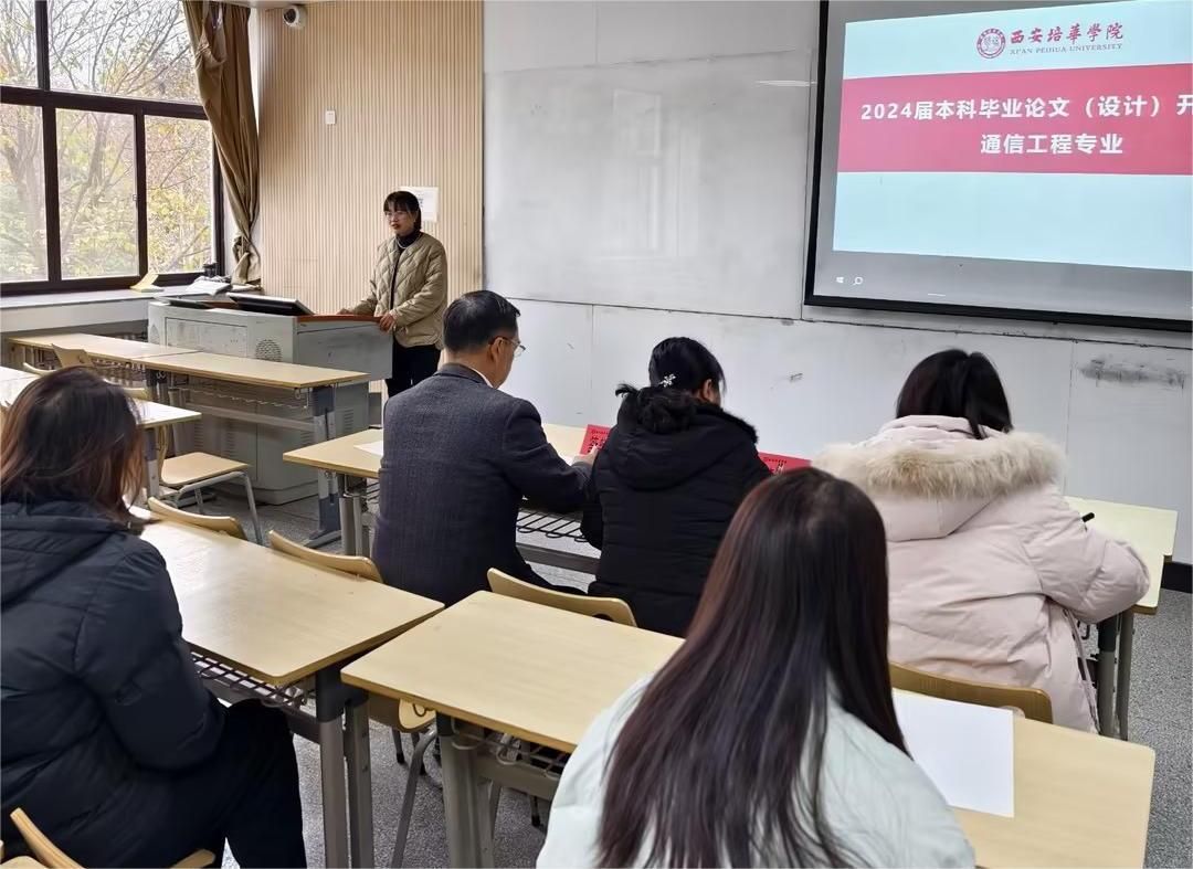 高度重视,精心组织。为确保开题答辩工作的顺利开展,根据《西安培华学院本科毕业论文(设计)工作管理办法》、 《关于做好2025届本科毕业论文(设计)开题工作的通知》等文件要求,学院成立以常务副院长成立为组长、副院长毛莉君为副组长、各系主任(专业负责)为组员的开题答辩工作小组,对开题答辩工作进行具体组织和管理,确保开题答辩工作有序开展。学院此次开题答辩共设12个答辩组,涉及电子信息工程、通信工程、计算机科学与技术、软件工程、数据科学与大数据技术、建筑学、工程造价、土木工程8个专业,32名答辩教师。结合学校文件和学院工作实际,分专业召开专题工作会,遴选答辩经验丰富教师担任答辩组长,分工协作,梳理答辩流程、明确答辩要求,做到标准统一,确保开题答辩顺利进行。