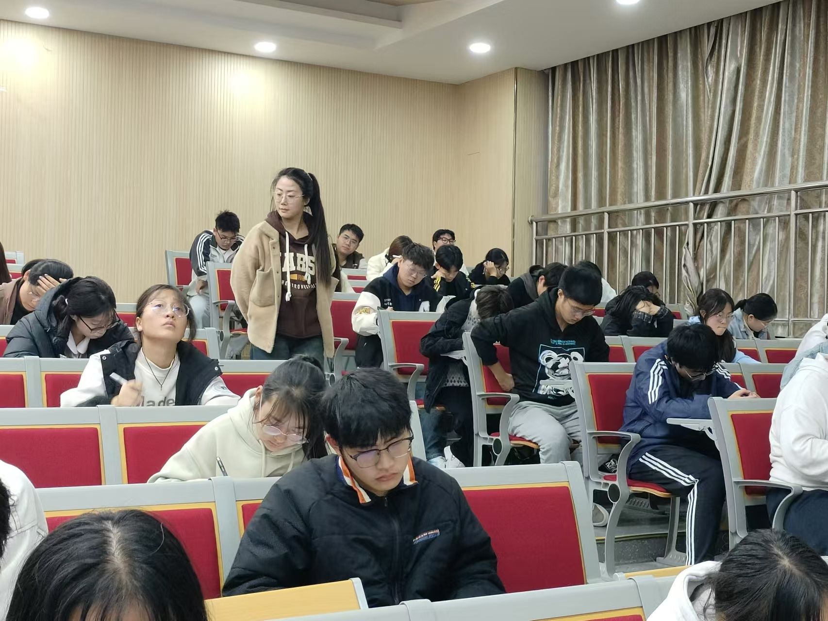 在院团委的组织下,现场气氛热烈而庄重,同学们整齐就坐,眼神中充满了对此次考试的期待。随着试卷的发放,考场内只余笔尖在纸张上摩挲的沙沙声。他们全神贯注地答题,每一个笔触都彰显出对共青团知识的深入学习和理解,展现出他们对共青团的真挚热爱和迫切向往。考务人员认真履行职责,严格监考,确保考试的公平公正,整个考场秩序井然。