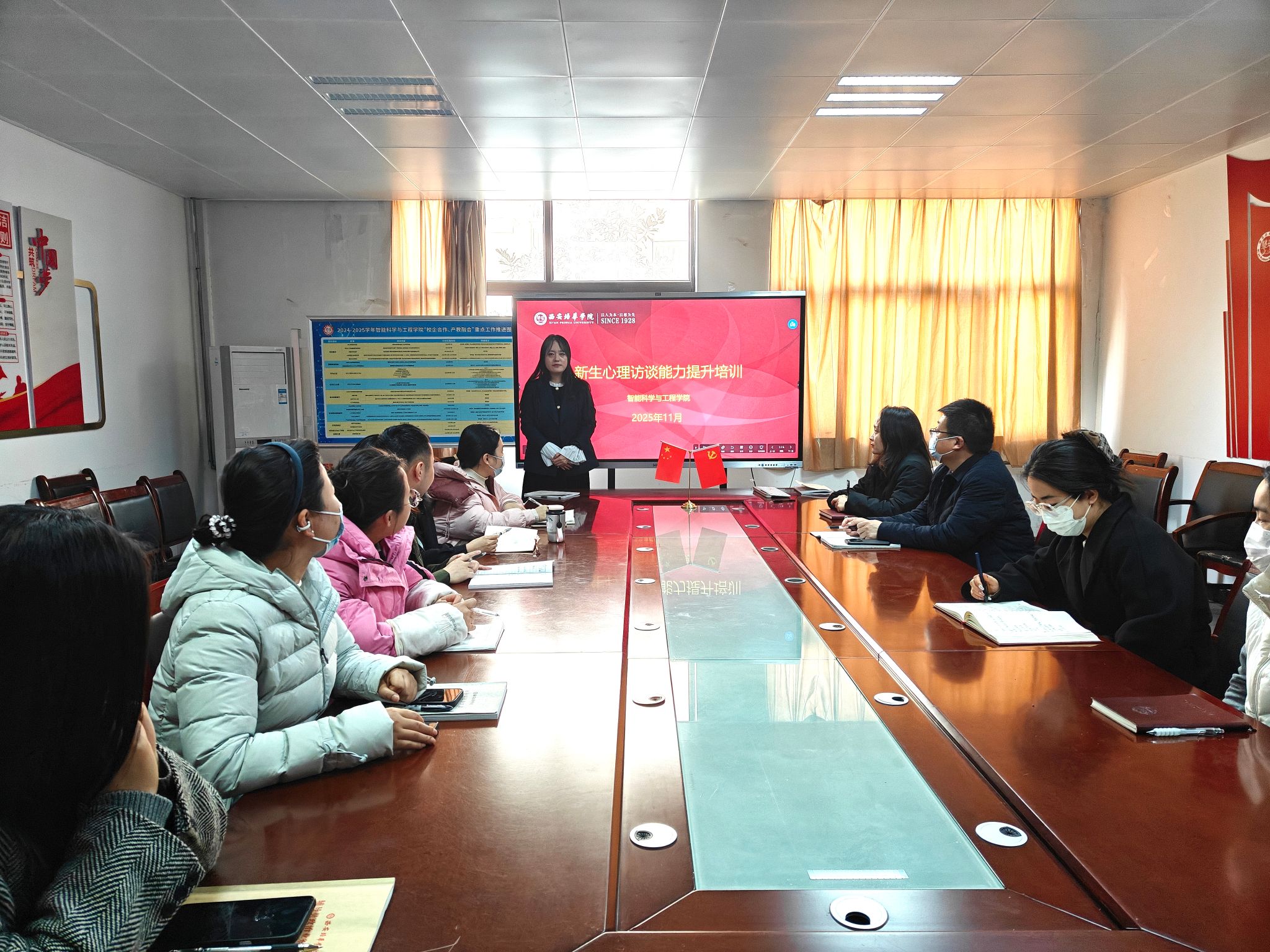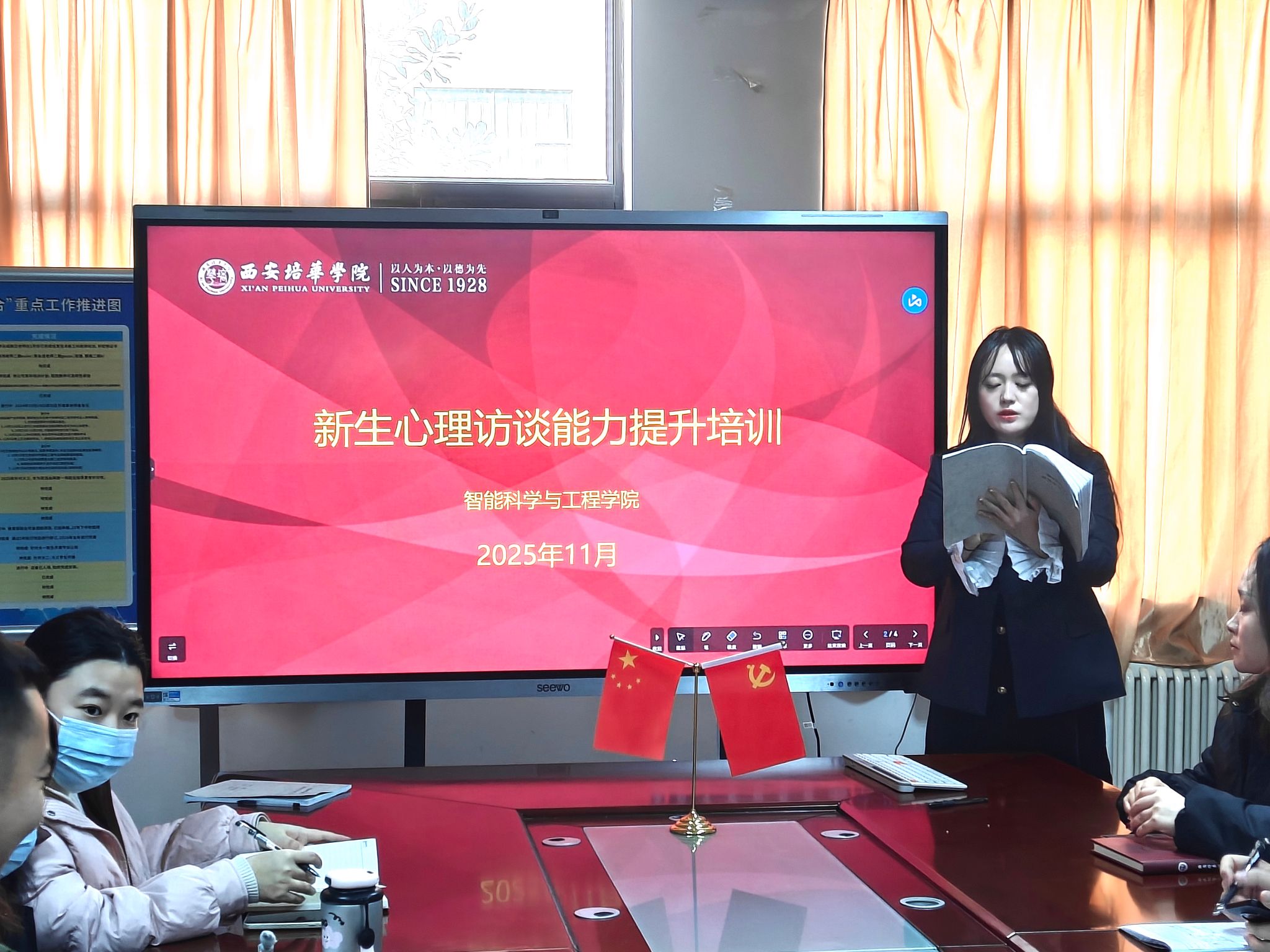 为进一步加强学院辅导员队伍专业化建设,提升新生心理访谈工作的规范性与实效性,帮助辅导员精准把握新生心理状态、筑牢心理健康防线,近日,智能科学与工程学院在学院会议室举办新生心理访谈能力提升专题培训。本次培训由高珊珊老师对全体辅导员进行培训。