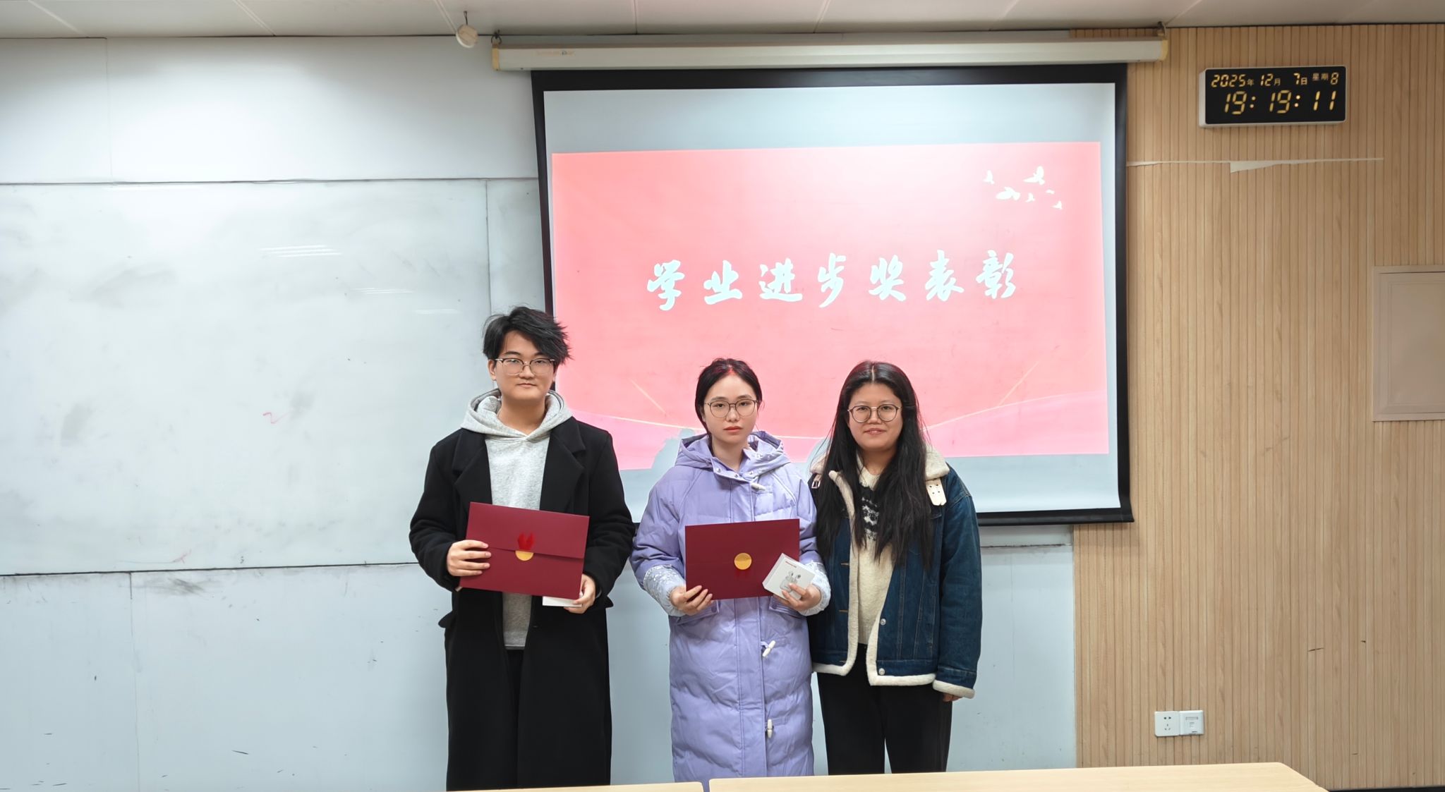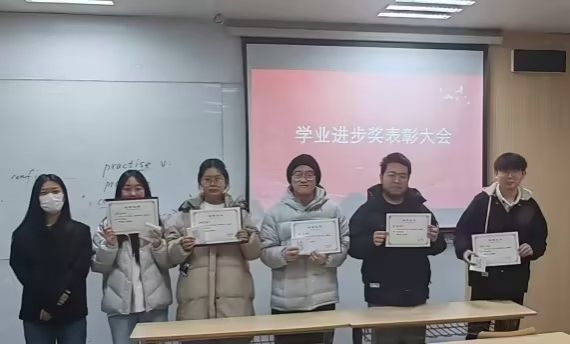 在温馨而庄重的班级氛围中,辅导员为每一位学业进步奖获得者颁发了荣誉证书。相较于全院大型表彰,班级内的颁奖更显亲切,同班同学们的掌声与祝福也让这份荣誉更具情感温度。一张张合影,记录下的不仅是个人的高光时刻,更是班级集体对进取精神的共同肯定与呵护。