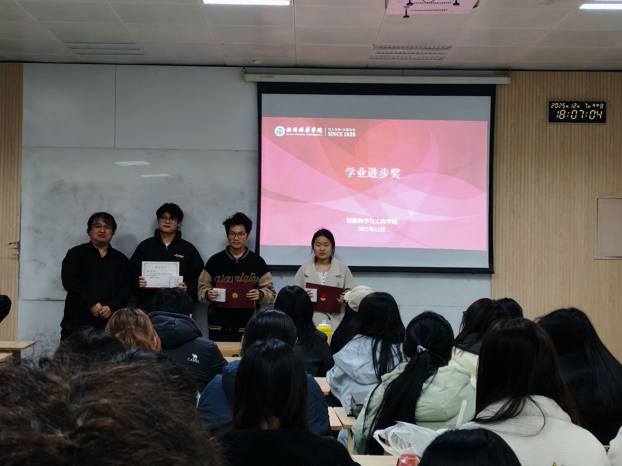 为精准激励学生学业发展,强化班风学风建设,12月7日,智能科学与工程学院组织各班级于班会时间,分别开展了学业进步奖表彰与经验分享活动。各辅导员深入所带班级,为获奖学生颁发荣誉证书,并组织获奖同学与班级同学进行面对面经验交流,营造了见贤思齐、互助共进的班级学习氛围。