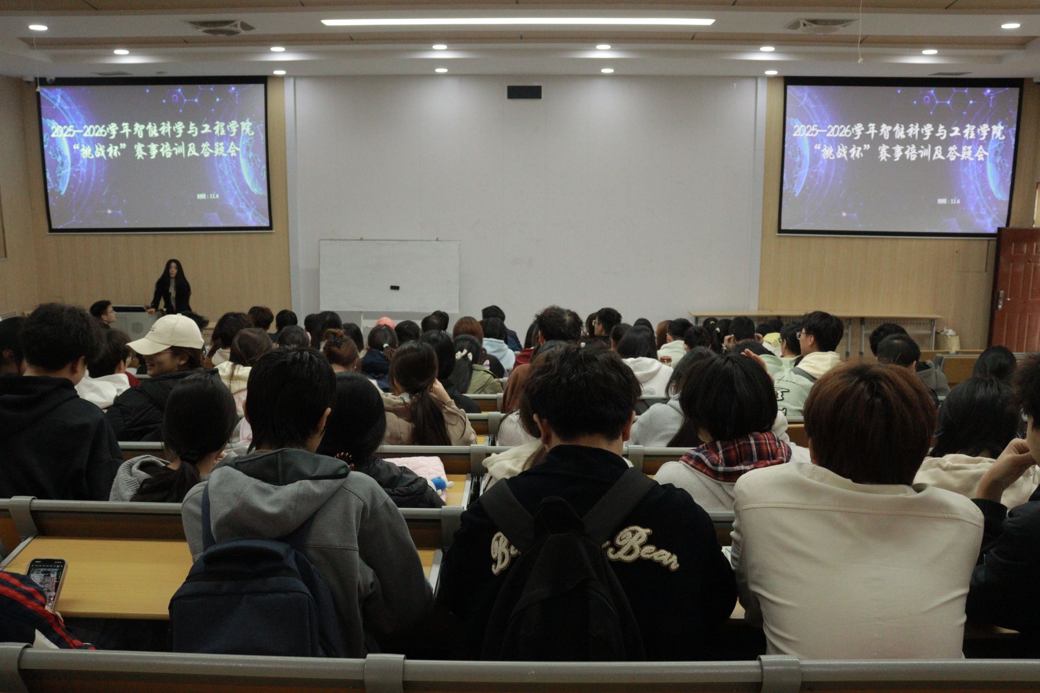为进一步厚植我院学子创新基因、淬炼创新精神,全面提升创新创业实践能力,由智能科学与工程学院团委筹备的“2025—2026学年挑战杯赛事专项培训及答疑会”在育英楼3502教室顺利举办。本次活动特别邀请西安培华学院校团委宣传部部长、挑战杯青创营负责人陈天航老师亲临现场,为学子们精准答疑、传经送宝。智能科学与工程学院团委书记仵怡欣老师出席活动,100余名学子齐聚一堂,沉浸式参与培训交流。