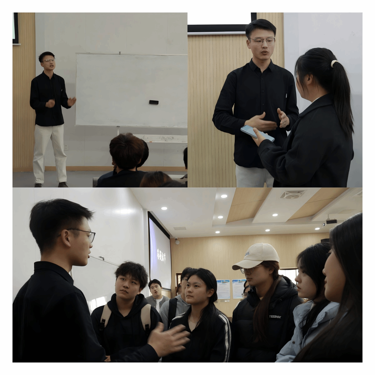 在备受期待的答疑互动环节,各参赛团队结合自身项目推进情况,踊跃提出赛道选择、方案优化等具体困惑。陈天航老师认真倾听每一个问题,逐一给予针对性指导。他特别强调,答辩环节是项目成果展示的关键,也是最具挑战性的一环——不仅考验队员的语言表达与逻辑组织能力,更对心理素质提出了高要求,鼓励同学们加强专项训练,精益求精。