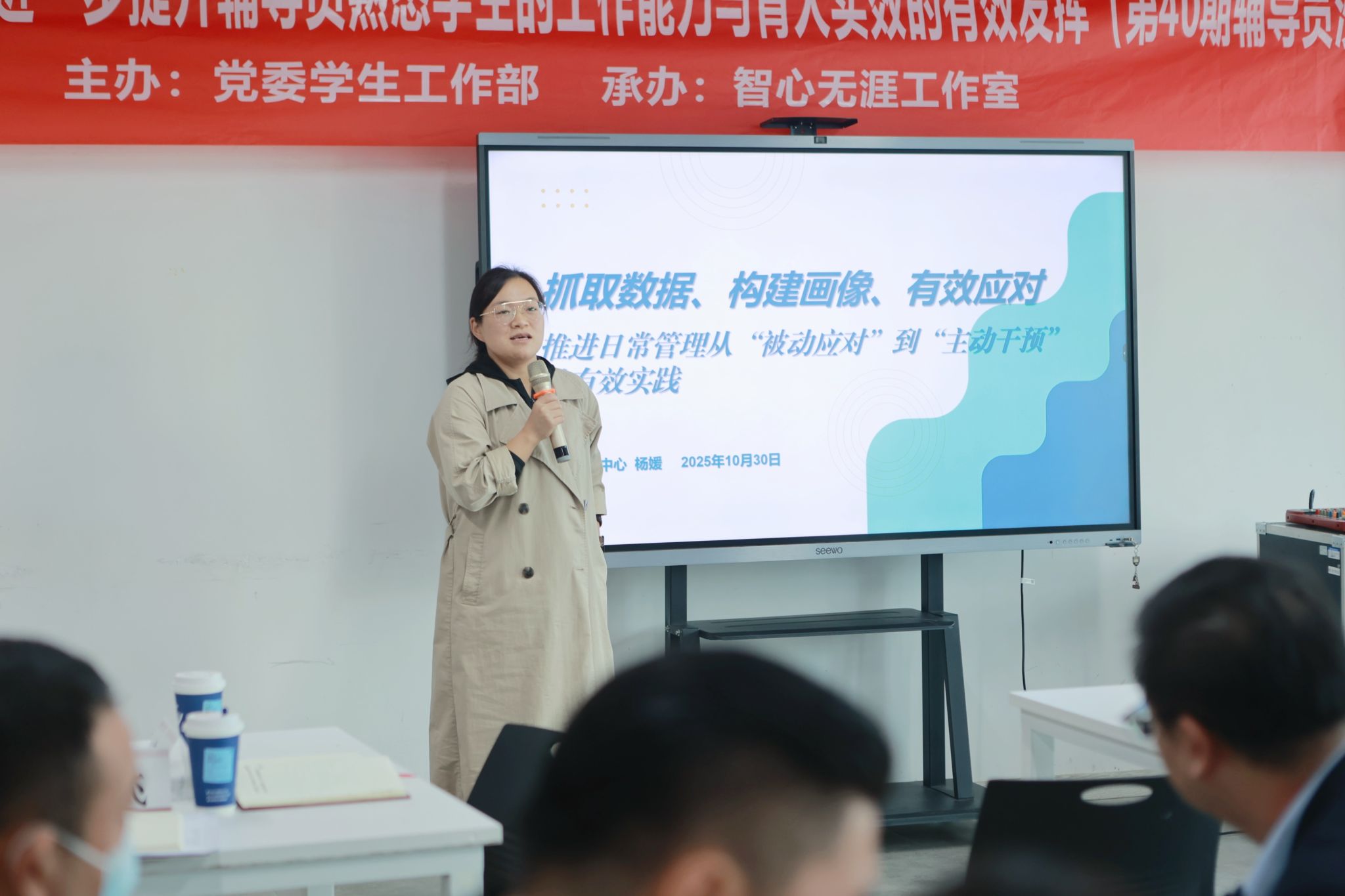 党委学生工作部副部长杨媛老师以“数据分析及方法”为主题进行分享,一是如何通过数据表格有效抓取学生学情信息,帮助辅导员更加深刻认识与熟悉自己的学生;二是如何切合实际开展学情分析,抓住学生学业发展与育人成效的助力;三是学会以学情分析为基础构建学生画像,助力辅导员实现从“被动应对”到“主动干预”的工作转变,为学生管理工作提供了实用的方法参考。