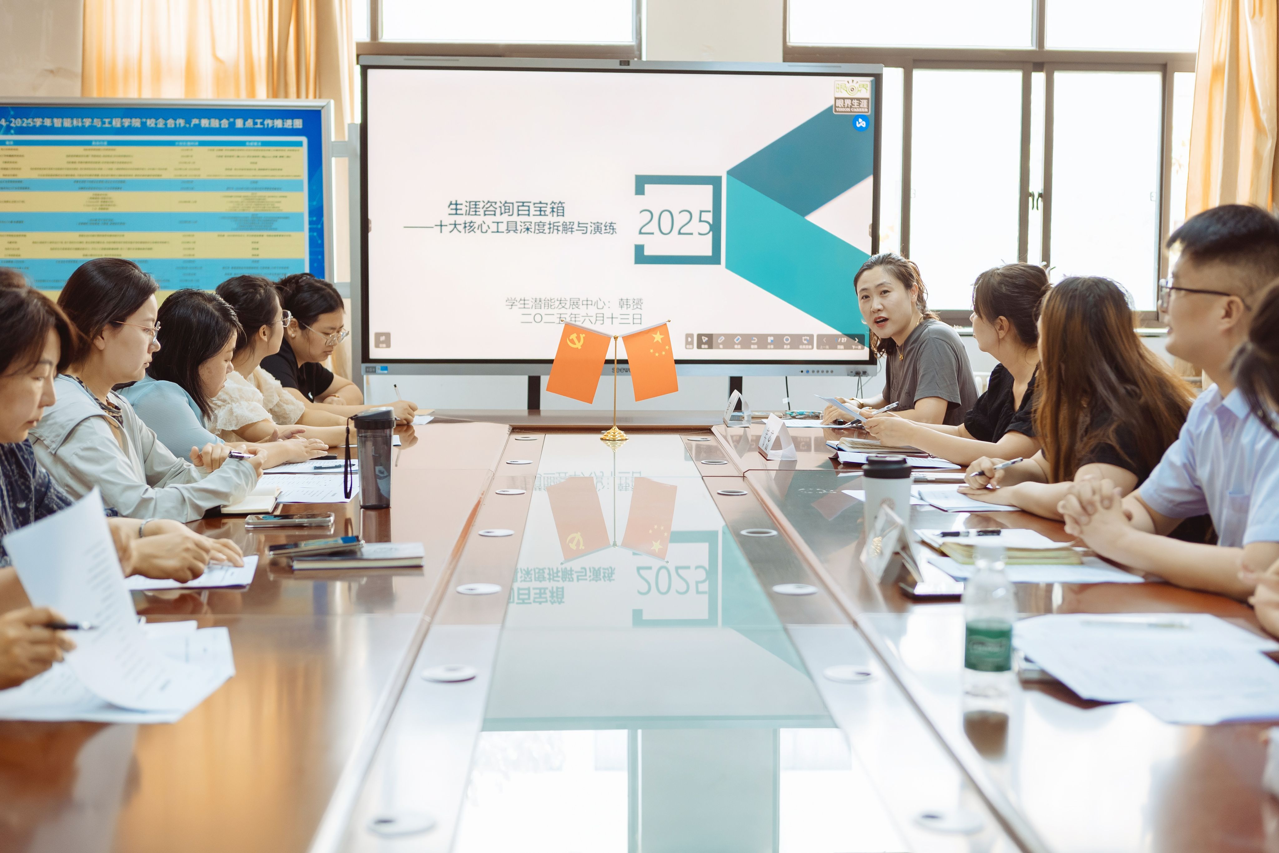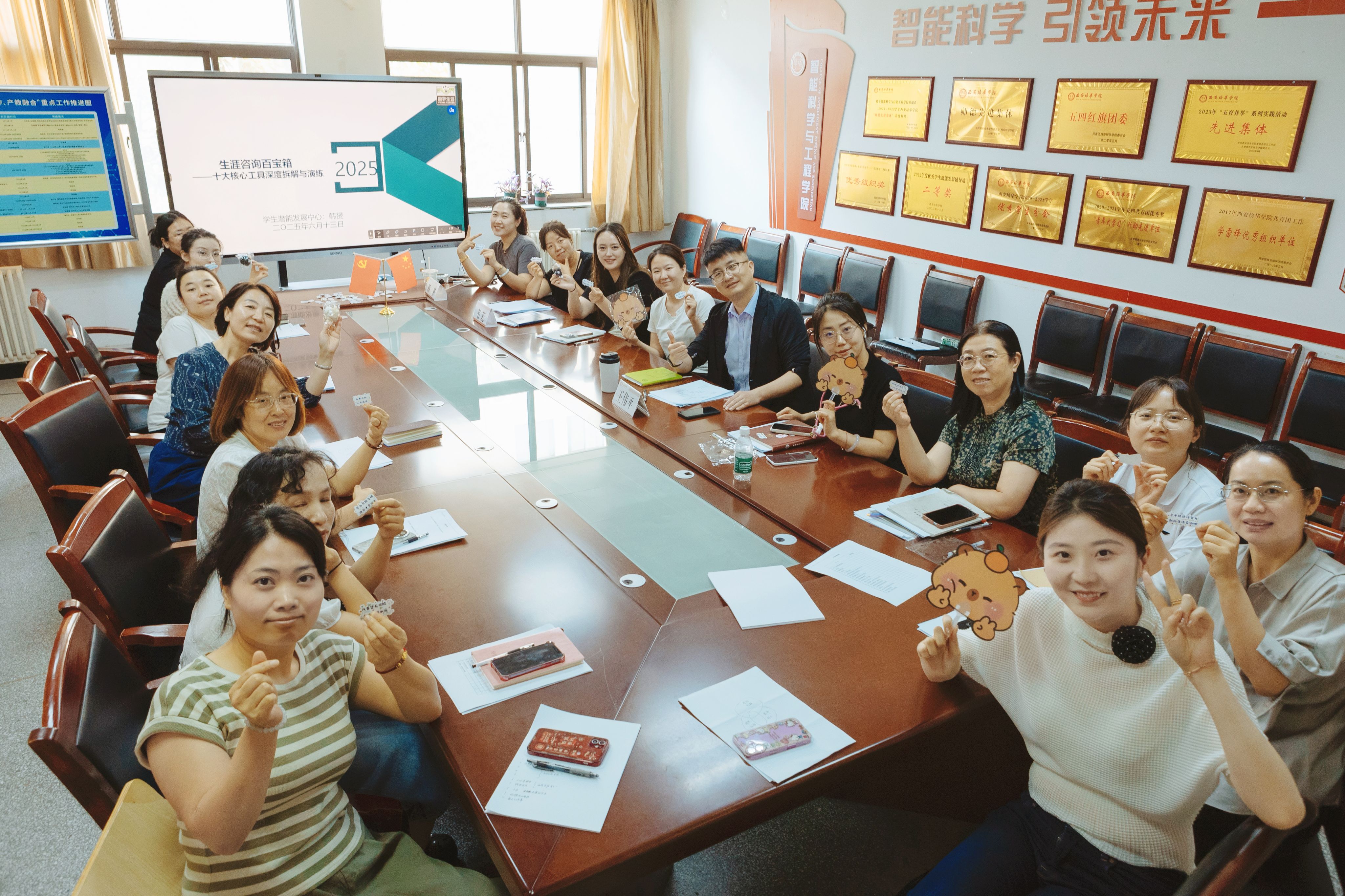为全面提升辅导员谈心谈话和生涯咨询能力,学生潜能发展中心韩赟老师在智能科学与工程学院3206教室成功举办生涯咨询百宝箱的辅导员与学业导师专项能力提升培训会。学院全体辅导员与学业导师代表齐聚一堂,聚焦学生成长核心问题,深度掌握职业生涯规划核心工具,共筑精准育人新格局。韩赟老师凭借丰富的经验与敏锐洞察力以及深厚的专业知识,系统梳理并深入剖析了学生群体存在的五大核心问题,衍生出十大核心工具。