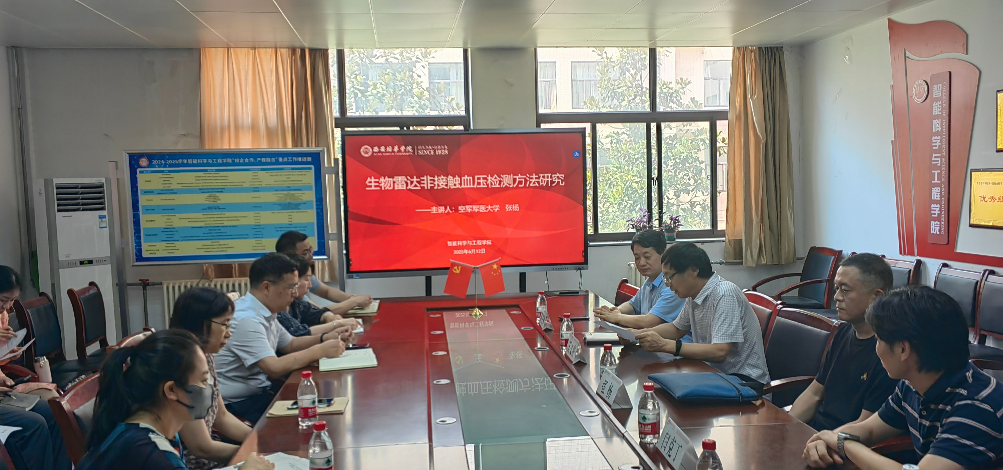 2025 年 6 月 12 日下午,我院有幸邀请到空军军医大学副教授、特聘研究员张杨老师,在 3204 学院会议室作了主题为 “生物雷达非接触血压检测方法研究” 的学术报告。本次报告主题与学院研究新方向相契合,吸引了众多申硕骨干教师参加,现场气氛热烈,学术氛围浓厚。