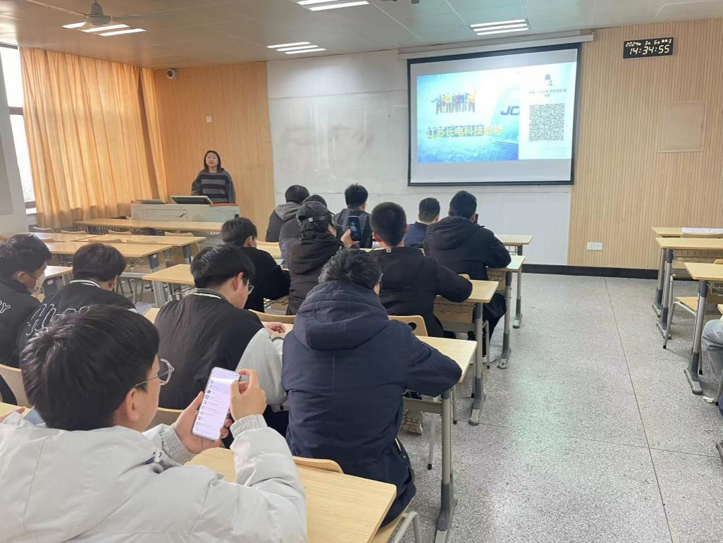 本次招聘会于14:30准时开始,来自江苏长电科技的招聘团队向同学们介绍了公司的发展历程、业务范围和未来规划,并详细介绍了公司在研发、生产、销售等方面的岗位需求及福利待遇。学生们积极参与,踊跃提问,表现出了对半导体行业和江苏长电科技的浓厚兴趣。