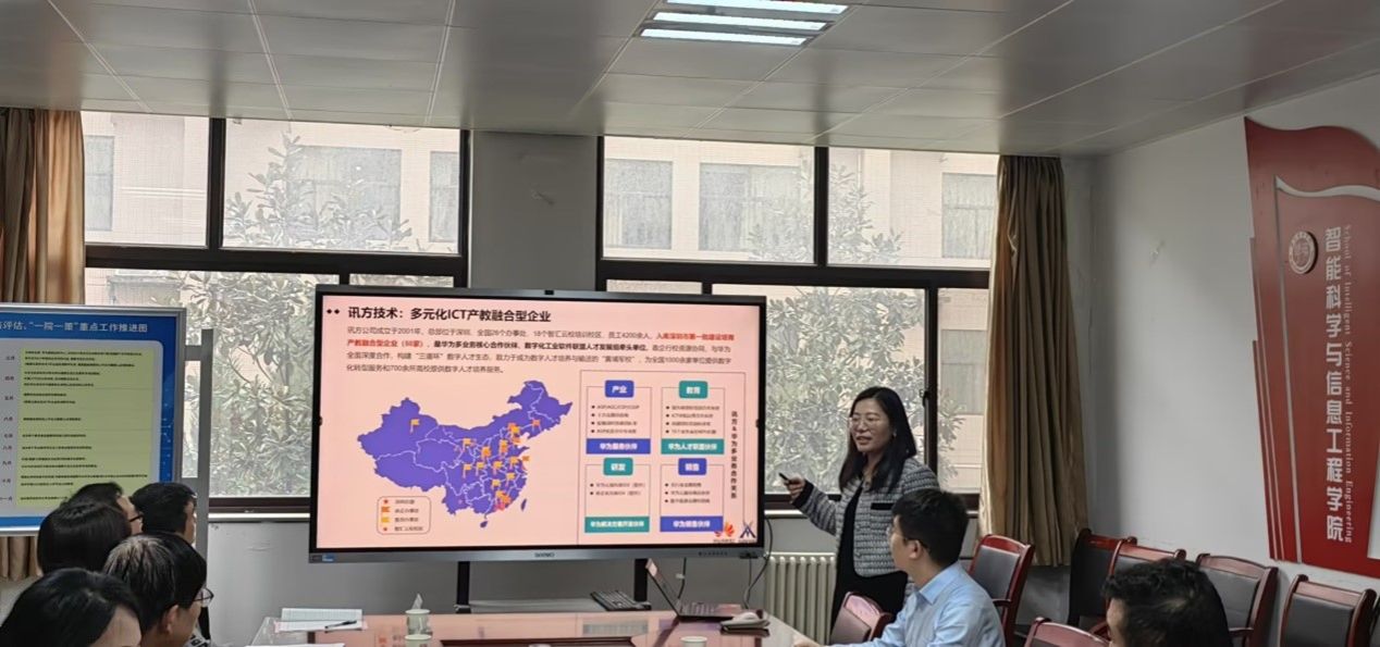 会议伊始,参会双方分别介绍了与会人员,为接下来的深入交流奠定了基础。随后,讯方技术股份有限公司陕西教育业务代表王姗姗重点介绍了鲲鹏信创产业学院前期合作成果,并对二期建设方案进行了详细汇报。下一步将从人才培养、双师资源池建设、职业资格认证培训、创新创业、科研孵化、实习就业等各方面展开深度合作。