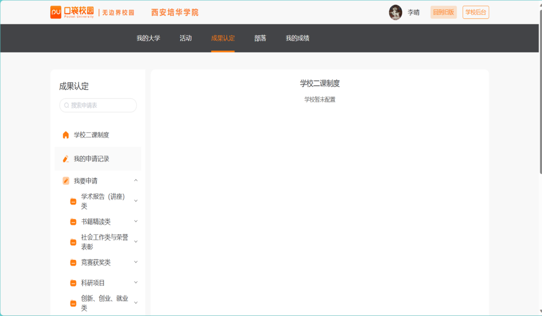 1.打开“PU口袋校园”APP,点击“成果认定”