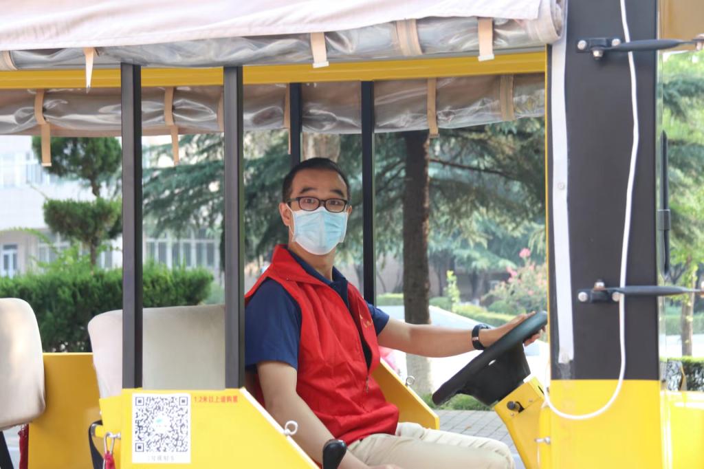学校的一道亮丽的风景线:老师们和各位学长学姐们开着培华专属的金黄色小火车承载着同学们。