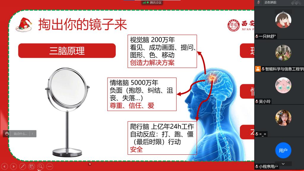 自疫情防控让城市“静”下来,校园的教学楼没有往日的人来人往,广大师生“蜗居”在宿舍内,一天中的放风时间大概就是出门做核酸。大家的心理压力随着春节到来也愈来愈大,都在担心自己是否能如期放假、是否能回家和家人团聚。就目前形势而言,疫情已经得到有效控制且物资储备充足,完全没有必要去焦虑和恐慌。本次会议就是让大家意识到,当你无法改变环境时,就要学会去接受,帮助大家提高心理防护能力,以乐观向上的心态过好每一天。