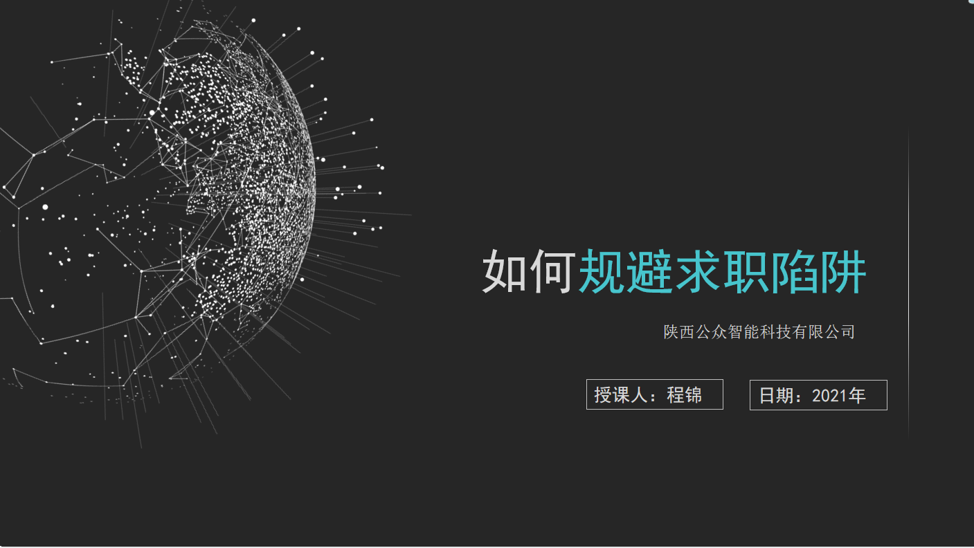 为进一步推动2022届毕业生就业指导工作,提高毕业生的安全意识,规避求职陷阱,我院特邀陕西公众智能科技有限公司程锦老师于2021年9月16日20:00,为我院2022届毕业生做就业指导工作,此次讲座由我院就业专干杨桂锋老师主持。