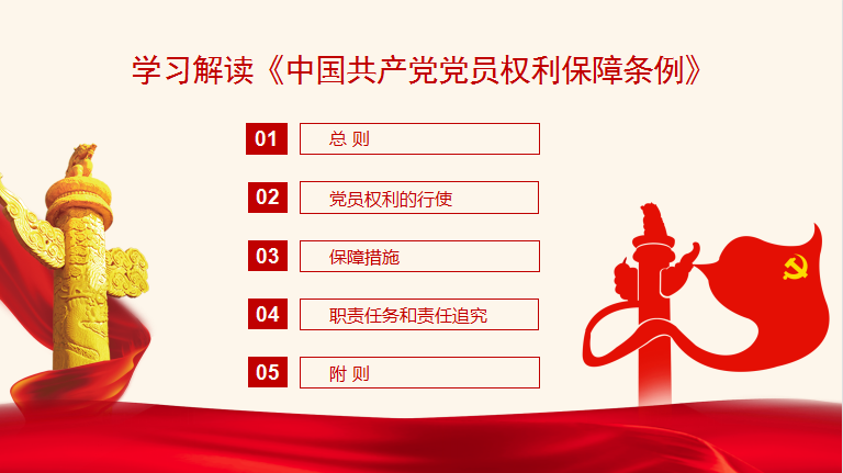 我院党总支纪检委员、教工支部书记毛莉君领学《中国共产党党员权利保障条例》。《条例》作为加强党员队伍建设的重要基础性法规,在保障党员权利方面发挥了重要作用。本次修订的《条例》有总则、党员权利的行使、保障措施、职责任务和责任追究和附则等共五章,五十二条。