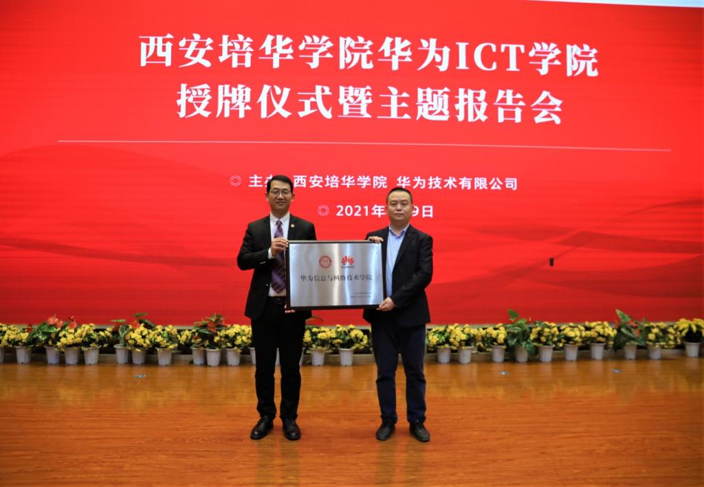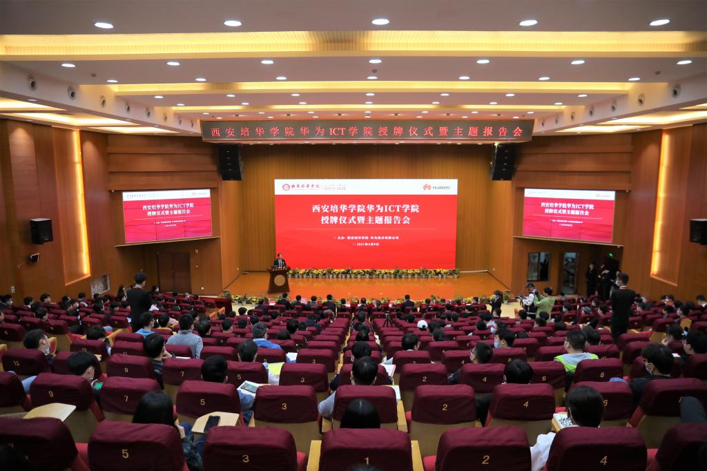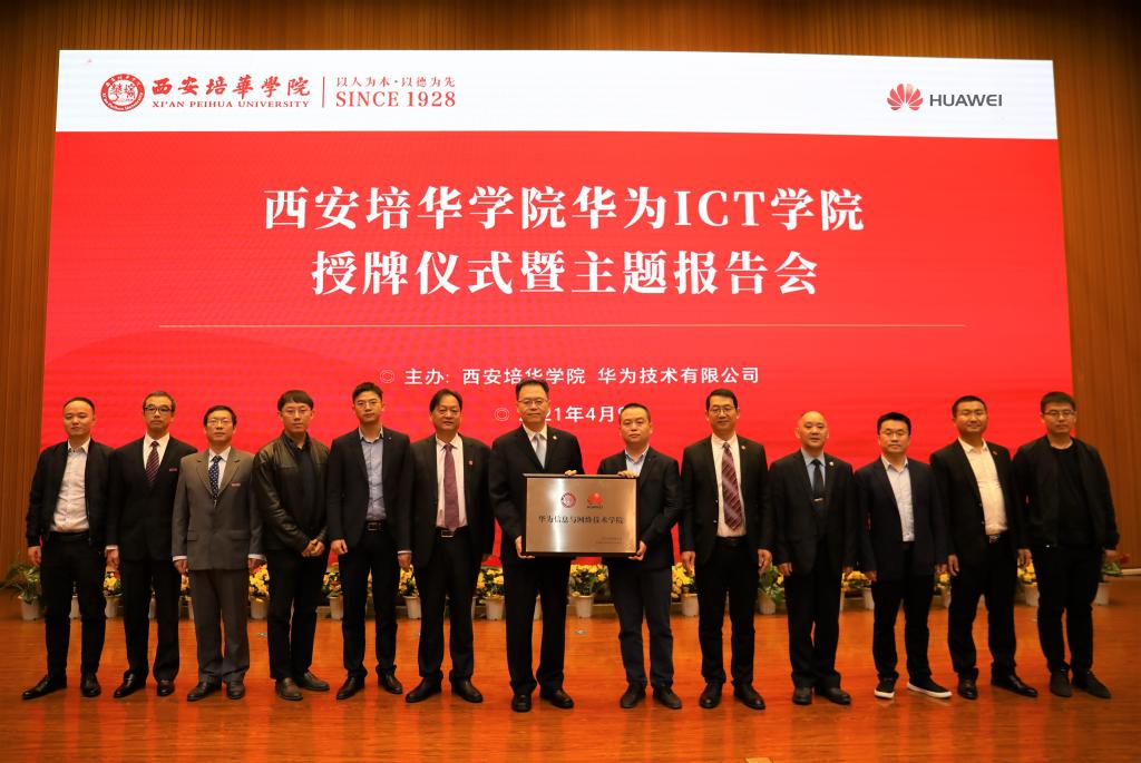 9日上午,西安培华学院华为ICT学院授牌仪式在维之图书馆报告厅隆重举行。西安培华学院理事长姜波博士,华为陕西政企副总经理吴楠、教育行业代表屈煜晖、西安教育行业代表杨星星、服务经理王晋、全球人才培训中心西北总监冉龙、认证资深讲师潘程佳,西安培华学院校长助理秦海锋,智能科学与信息工程学院院长程国建、副院长田孝华、党总支书记兼行政副院长南兵,西安云火网络科技有限公司总经理张虎等出席揭牌仪式,学校相关部门负责同志、教师代表、学生代表近300余人参加本次授牌仪式。仪式由智能科学与信息工程学院院长程国建主持。