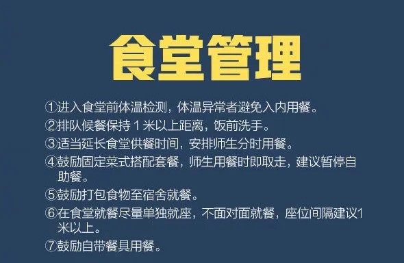 (2) 采用分餐进食,避免人员密集。餐厅每日消毒1次,餐桌椅使用后进行消毒。餐具用品须高温消毒。操作间保持清洁干燥,严禁生食和熟食用品混用,避免肉类生食。