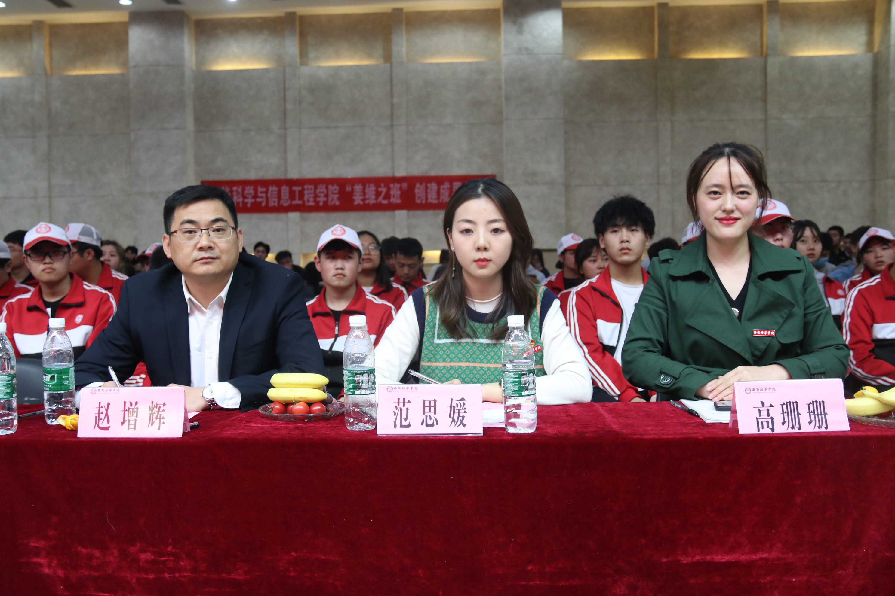 参与本次活动的嘉宾有党总支书记兼行政副院长南兵书记、党总支副书记王林书记、党务干事孙晓薇老师、团委书记范思媛老师、学生干事王伟平老师、电子系主任徐进老师、计算机系教师赵增辉老师、辅导员杨桂锋老师、朱琪老师、童小辉老师、高珊珊老师、参与“姜维之班”竞选的班级全体成员以及大一全体班干部。