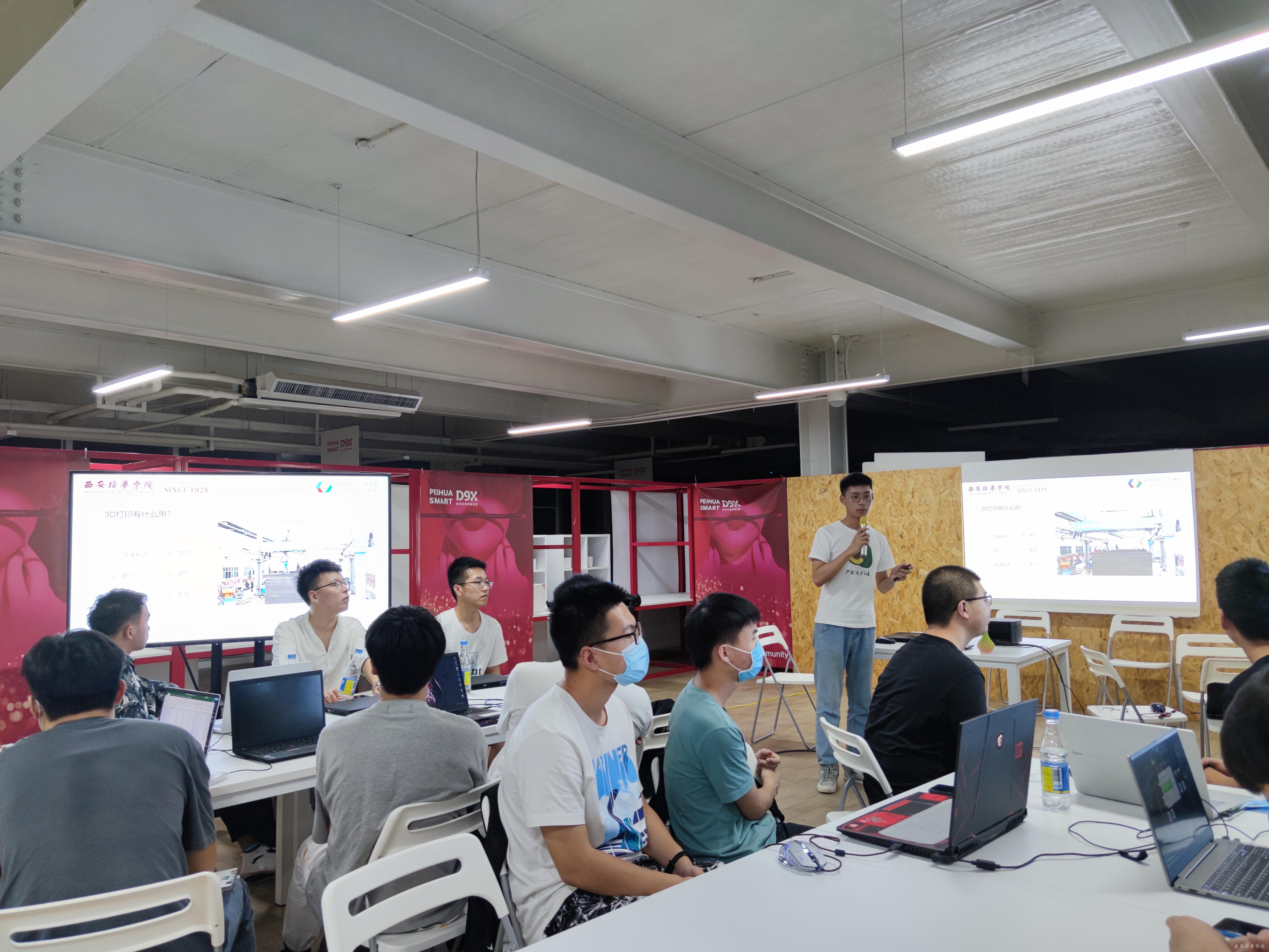 宋涛和余鹏飞学长带领同学们学习如何使用建模工具及3D打印机