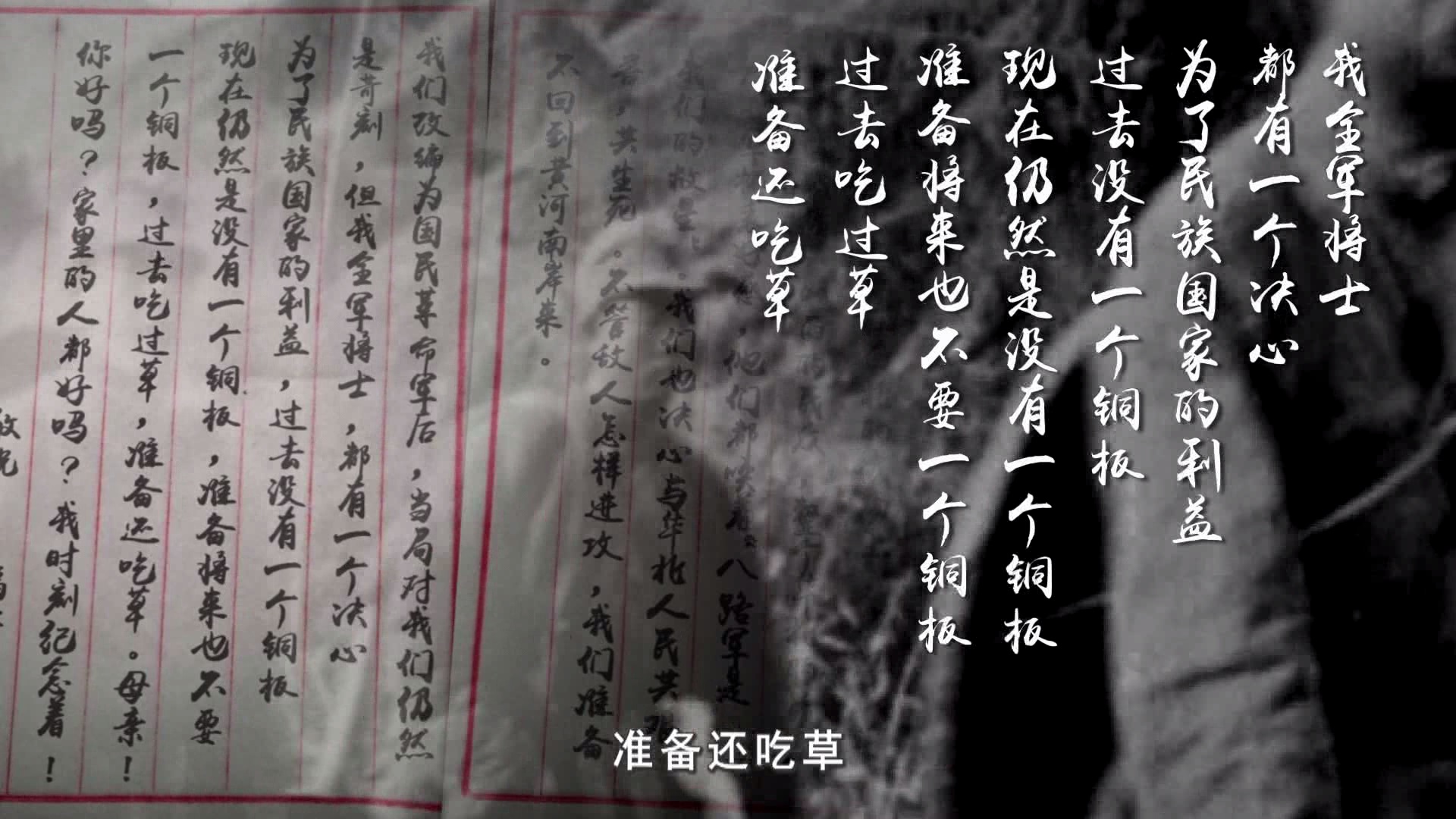 “我全军将士,都有一个决心,为了民族国家的利益,过去没有一个铜板,现在仍然是没有一个铜板,准备将来也不要一个铜板,过去吃过草,准备还吃草。”