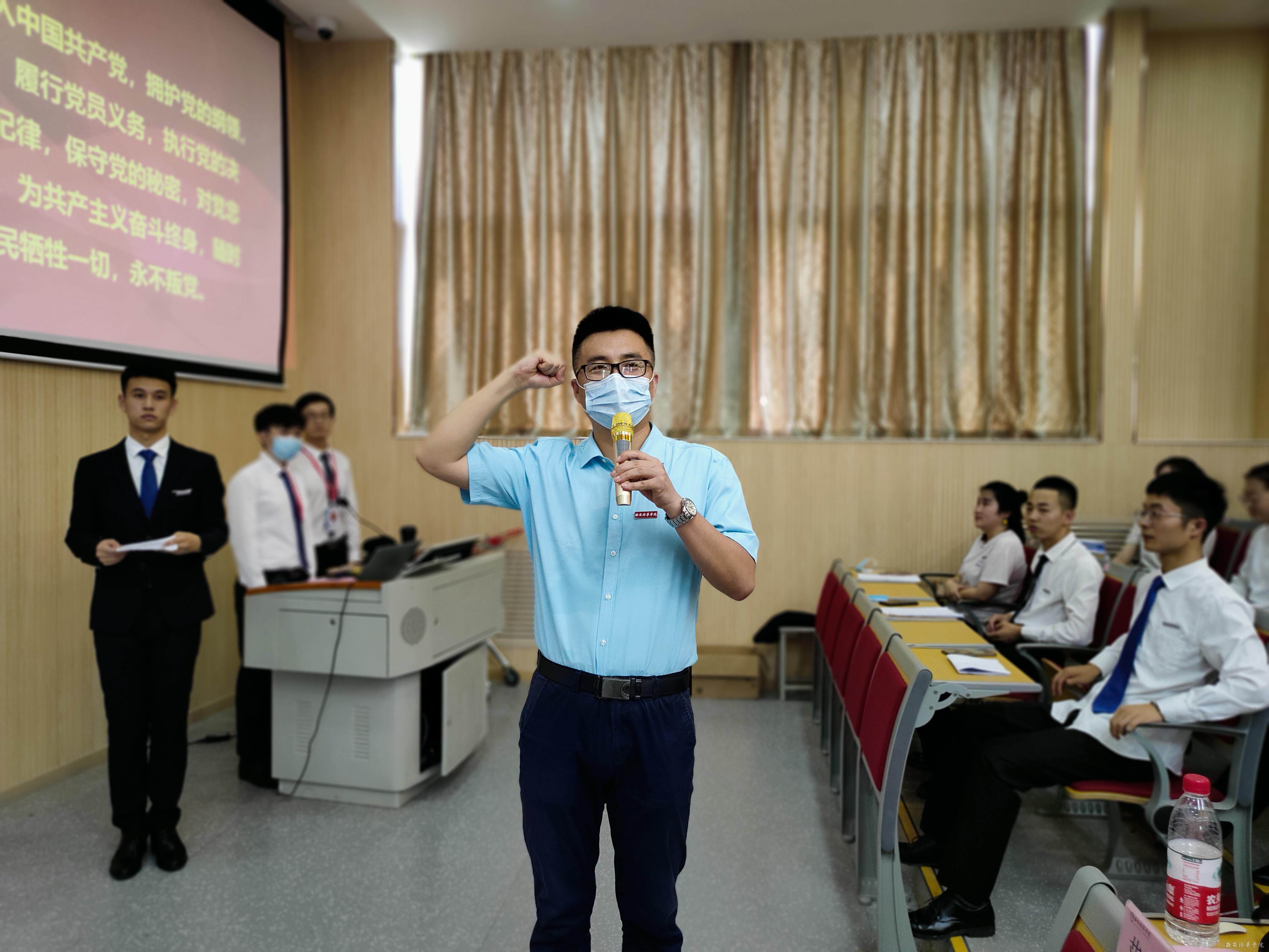 重温入党誓词,坚定理想信念。“要立为党之志,要修为党之心,要行为党之实”。 面对鲜红的党旗,院学生支部书记王伟平同志作为领誓人,带领到会的全体党员高举右手,再次庄严宣誓。“我志愿加入中国共产党……随时准备为党和人民牺牲一切,永不叛党。”铿锵恢宏的誓词,强烈震撼着在场的每一位党员,一字一句,神圣而豪迈,再次接受入党誓词的洗礼,广大党员更加坚定理想信念,牢记初心使命,以实际行动恪守对党的承诺,忠实践行自己的入党誓词!
