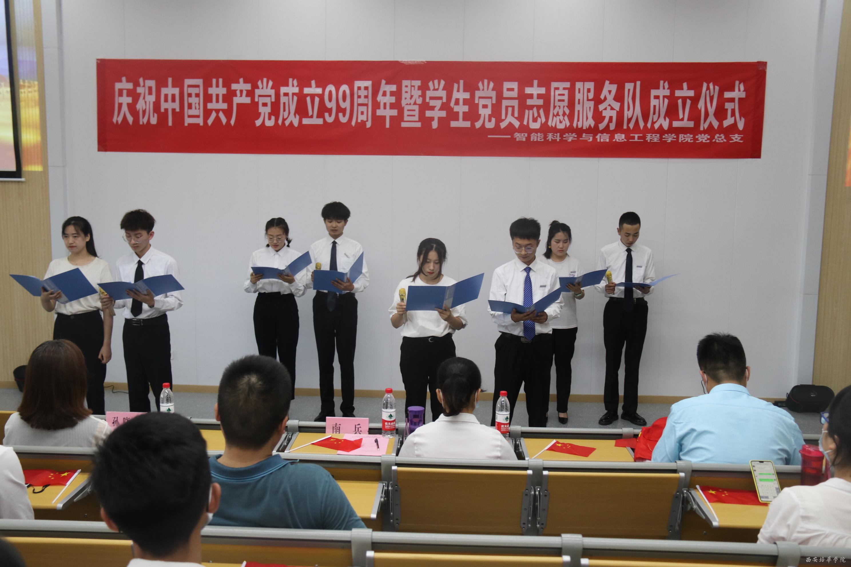 在党的生日到来之际,智能科学与信息工程学院党总支于2020年6月30日在3505教室隆重召开“不忘初心,牢记使命”庆祝中国共产党成立99周年主题党日活动暨学生党员志愿服务队成立仪式。参加本次活动的有智能科学与信息工程学院教工支部书记毛莉君、党务兼行政干事孙晓微、学生支部书记王伟平、党总支委员张燕、团委书记范思媛及各位党员、积极分子代表。