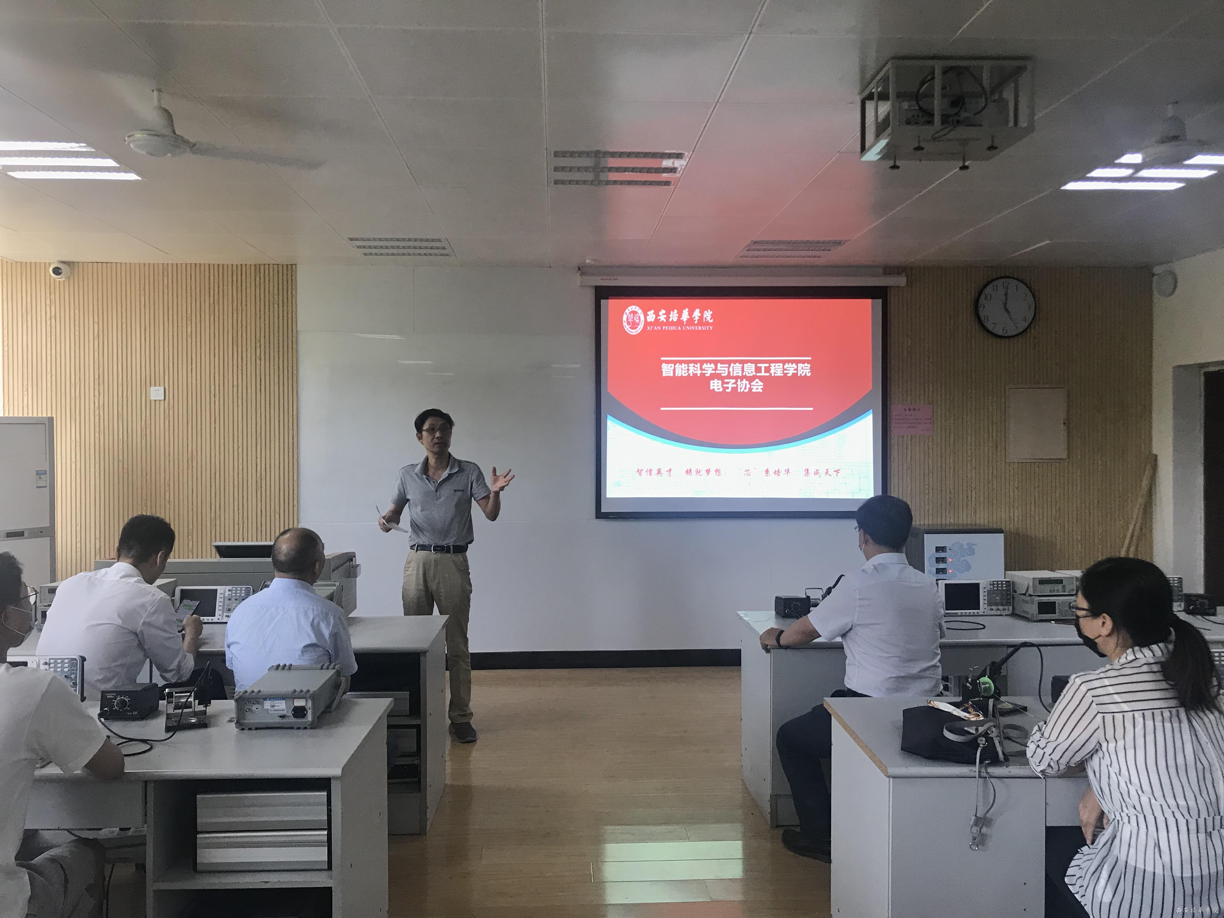 2020年6月6日16:30,智能科学与信息工程学院电子协会成立大会于育英楼3120教室如期举行,出席本次大会的领导和老师有智能科学与信息工程学院党总支书记兼行政副院长南兵,智能科学与信息工程学院副院长田孝华,电子系主任徐进老师,实验室主任陈实培老师以及电子协会指导老师胡亚维老师。本次大会由电子系主任徐进老师主持