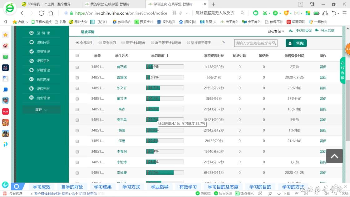 利用智慧树的在线视频建立了共享课堂,共享课满足了学生日常在家对课程基本内容的学习,教师还可以通过该软件方便查看学生学习进度、习题完成情况、学习效果并实现学生学习的管理。