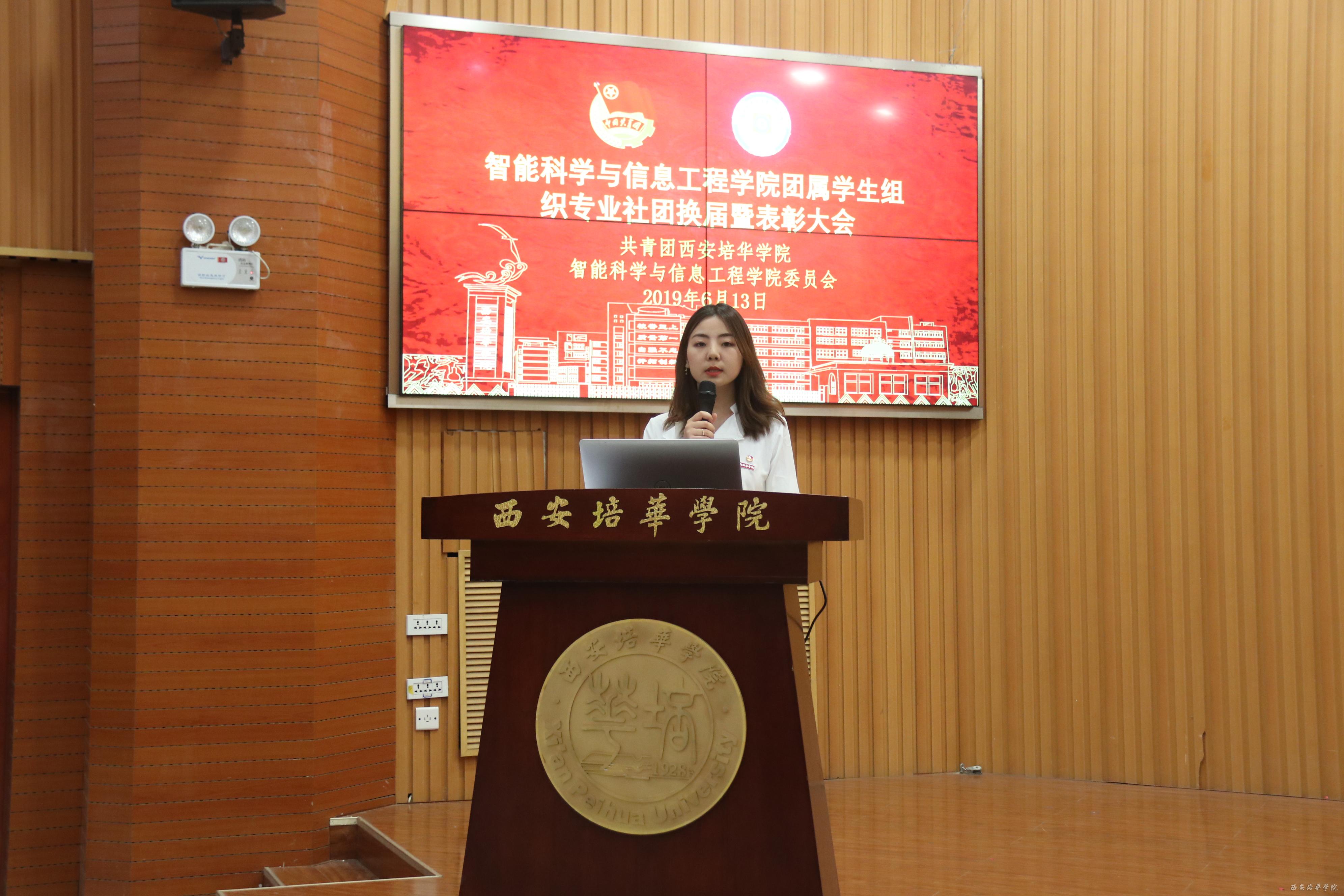 2019年6月13日18:30在西安培华学院明德楼四楼报告厅举办“智能科学与信息工程学院团属学生组织及专业社团换届暨表彰大会”。
