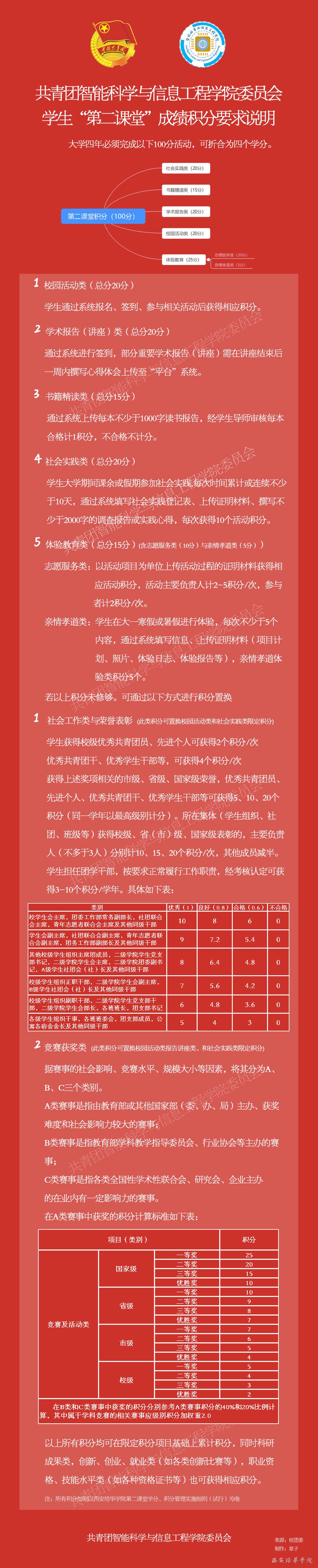 “第二课堂”主要搭载平台为“PU口袋校园”。下面以一张图来为大家解读我院“第二课堂”成绩积分获得方法及详细内容: