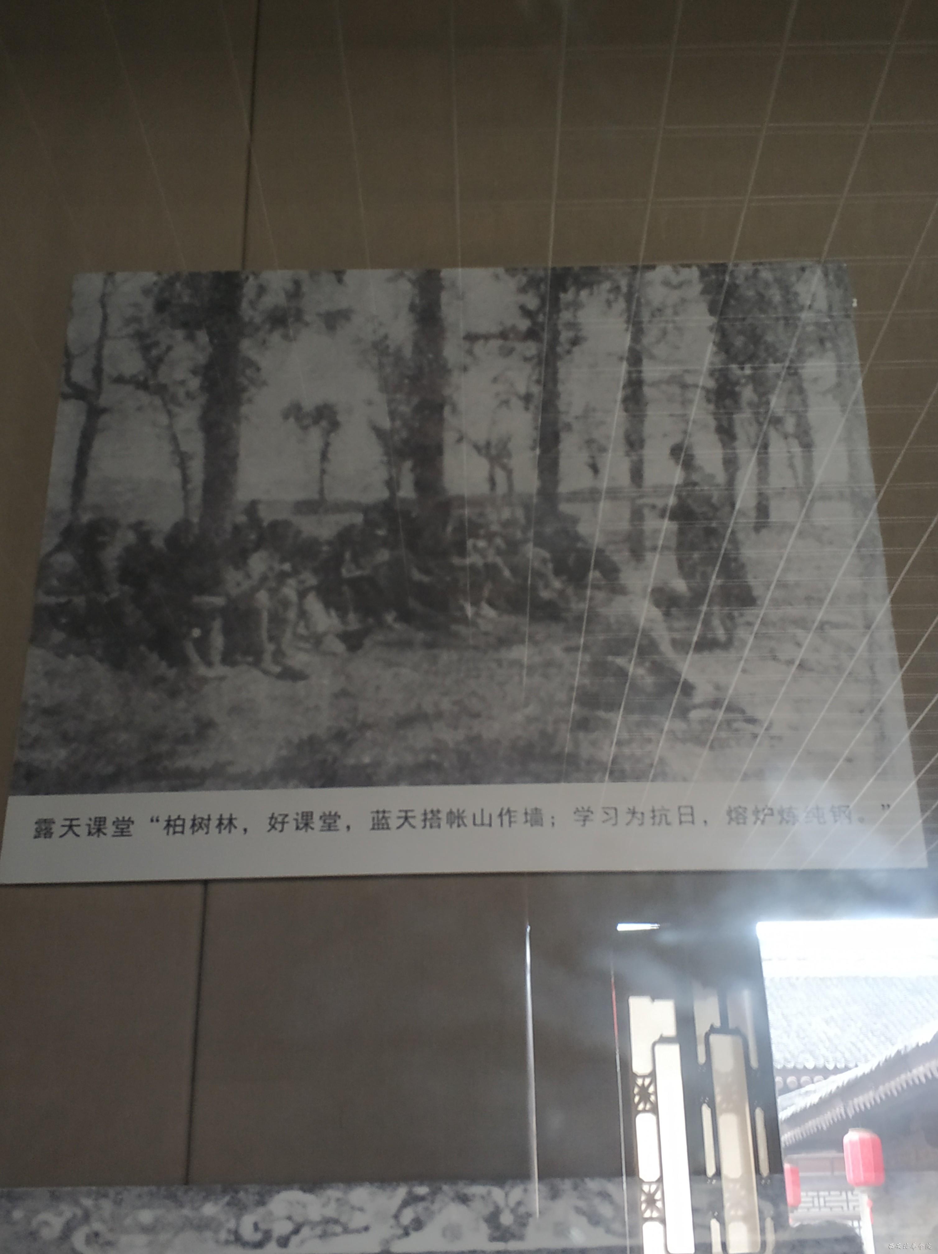 在讲解员的带领下,了解安吴青训班创建背景、发展过程和革命成果。聆听当年的故事,仔细观看纪念馆内陈列文献、照片,缅怀胡乔木等老一辈无产阶级革命家在安吴开展革命教育活动的光辉历程。看着那一张张题词,一件件实物,大家深有感触,在当时那样艰苦的环境中,安吴青训班用自己独特的教学方法把成千上百的有志青年聚集在一起,“柏树林,好课堂,蓝天搭帐山作墙;学习为抗日,熔炉炼纯钢。”露天课堂真实写照了当年艰苦的环境,“学好本领上前线”吹起了冲锋的号角,表达了誓死抗日的决心!