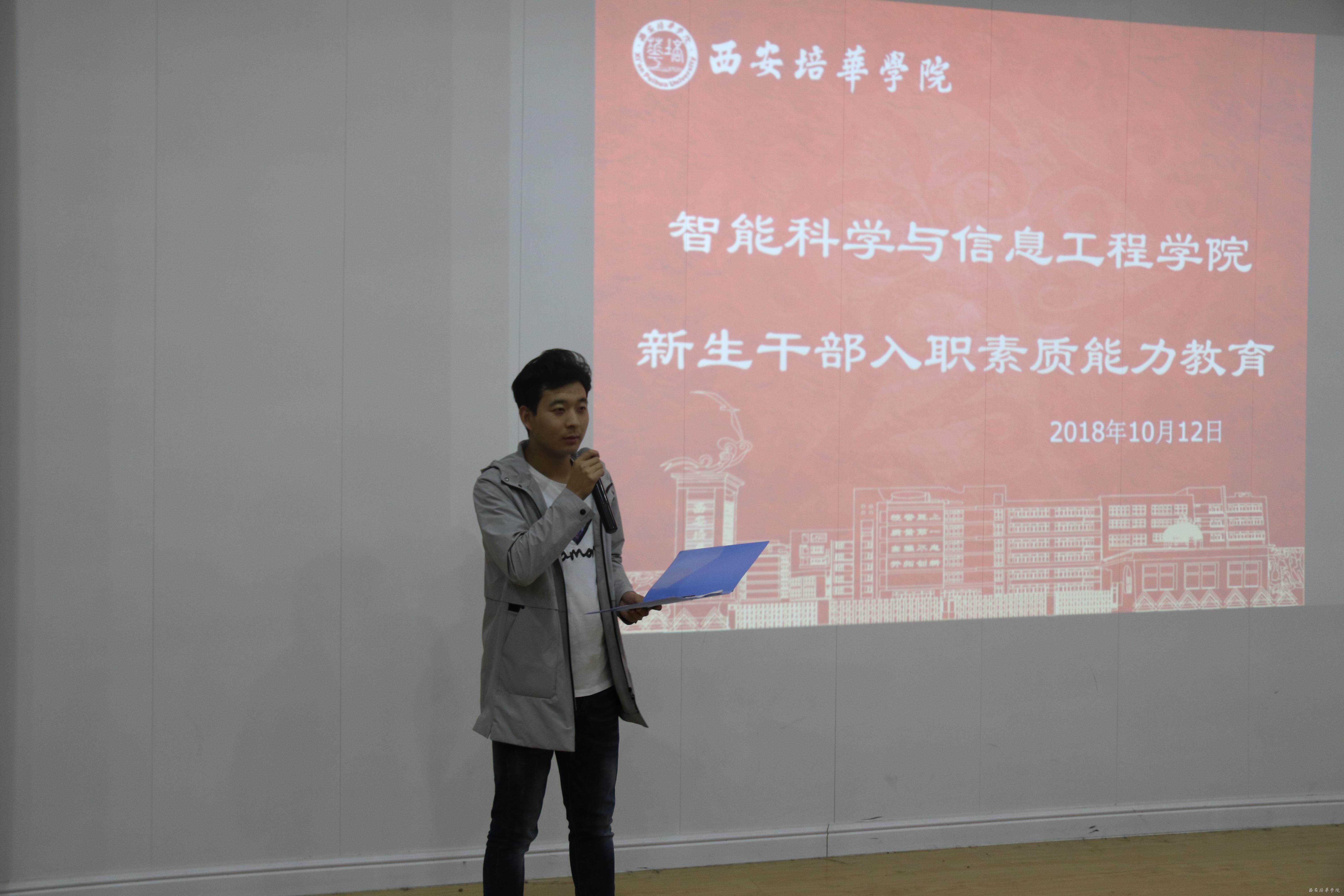 2018年10月12日下午六点四十,智能科学与信息工程学院团委在博远楼J202教室召开了新生团学干部基本能力素质教育。智能科学与信息工程学院团委,学生会,以及青年志愿者协会参加本次会议。