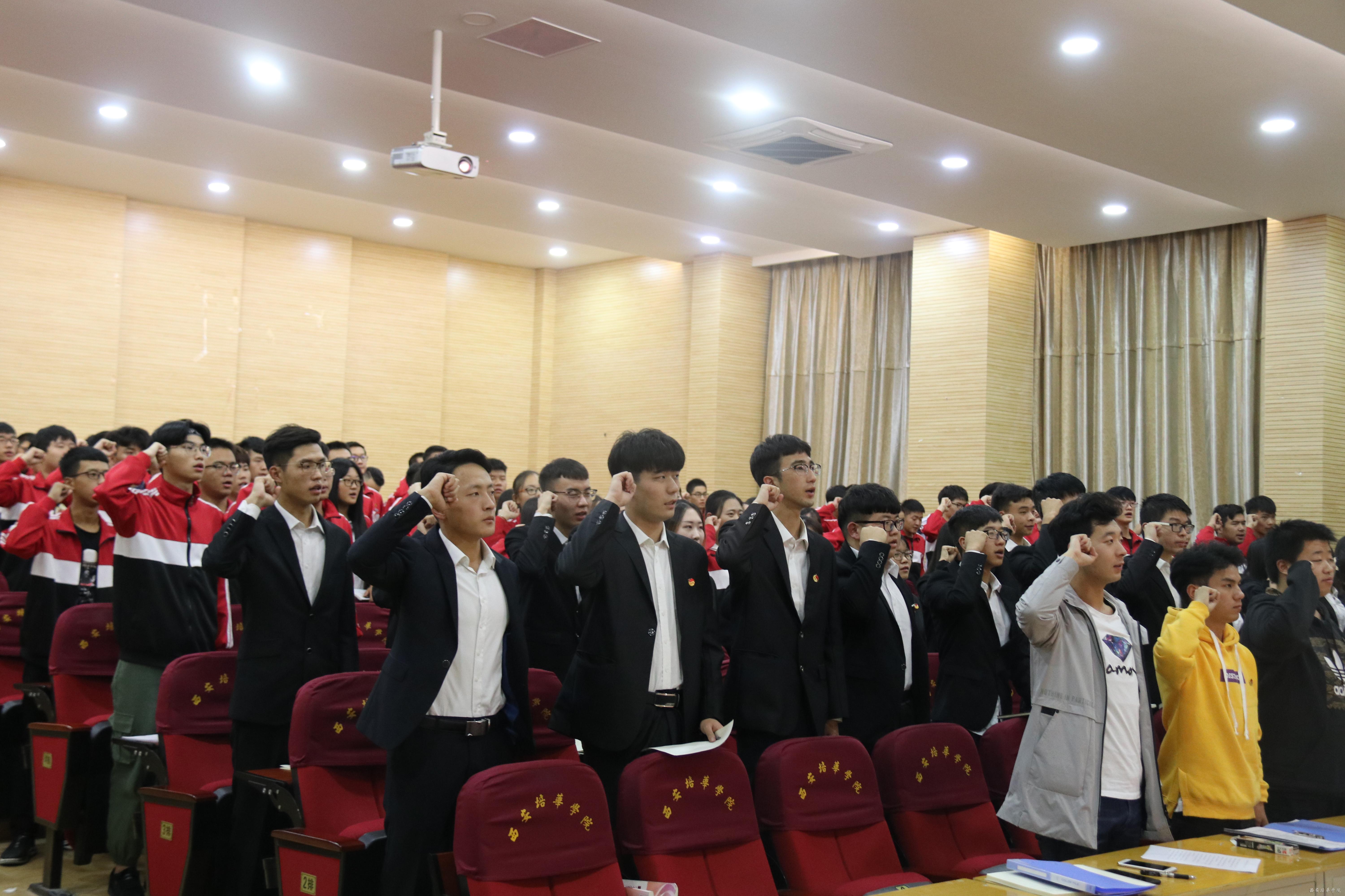 学生会主席蔡志远宣读《干部自律公约》。为建设一支胸怀理想、心系同学、品学兼优、作风扎实的工作骨干队伍,共同维护组织形象,更好履行工作职责,我们要恪守学生本分,带头学习;牢记学生组织宗旨;永葆理想主义情怀,甘于奉献;扎扎实实做事,求真务实;营造平氛围,坚决反对“官”本位思想和作风;摒弃庸俗习气,坚决抵制社会不良习气侵蚀。