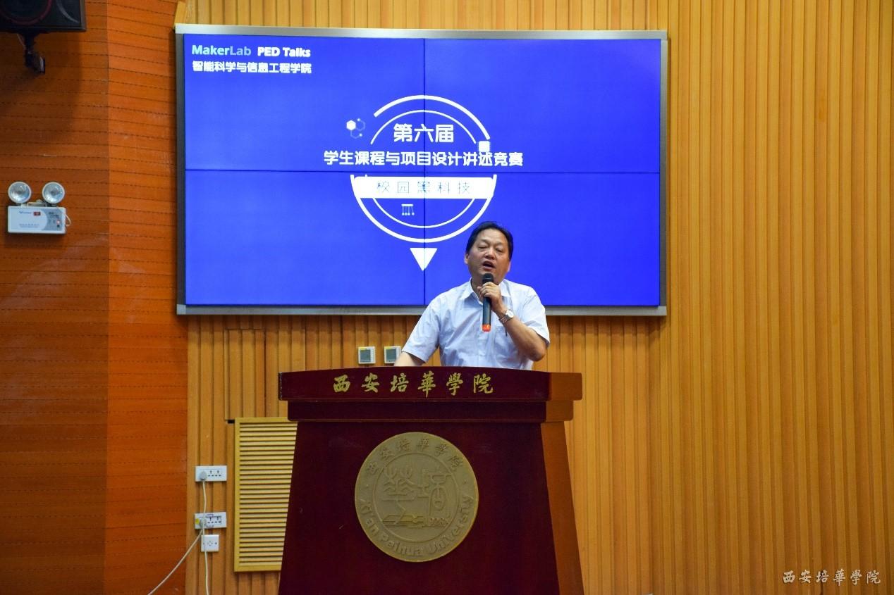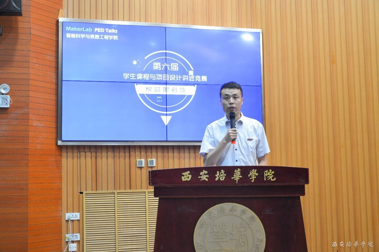首先,由西安培华学院产学研协同创新中心副主任刘斌老师为致辞:“产学合作从成果上来说我校获得在陕西省省级奖项7项,大学生创新创业5项,智能科学与信息工程学院申报互联网+项目目前已完成86项,智能科学与信息工程学院引领我校科技创新创业,达到‘以赛促学,以赛促教,赛学结合’的目的,同时也希望同学们积极参与科技比赛,学创相结合,让校园黑科技一“黑”到底。”