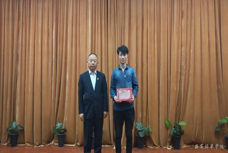 大会第二项,由党总支书记史立军和党务干事马悦老师为获奖学生颁奖。