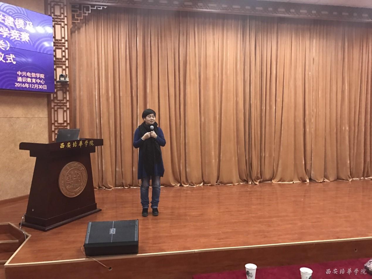 2016年12月30日上午11点,由中兴电信学院和通识教育中心联合举办的全国大学生数学建模及全国大学生数学竞赛(非数学类)颁奖仪式在培华国学大讲堂隆重举行。中兴电信学院全体教师、获奖学生,通识教育中心主任刘利霞、副主任徐淑华及高等数学教研组全体教师均到场参加,本次颁奖仪式由中兴电信学院副院长田孝华主持。