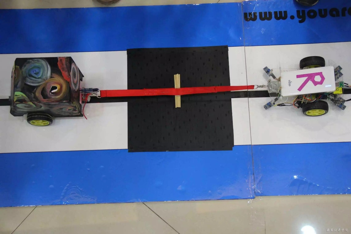 正在进行拔河赛的智能小车
