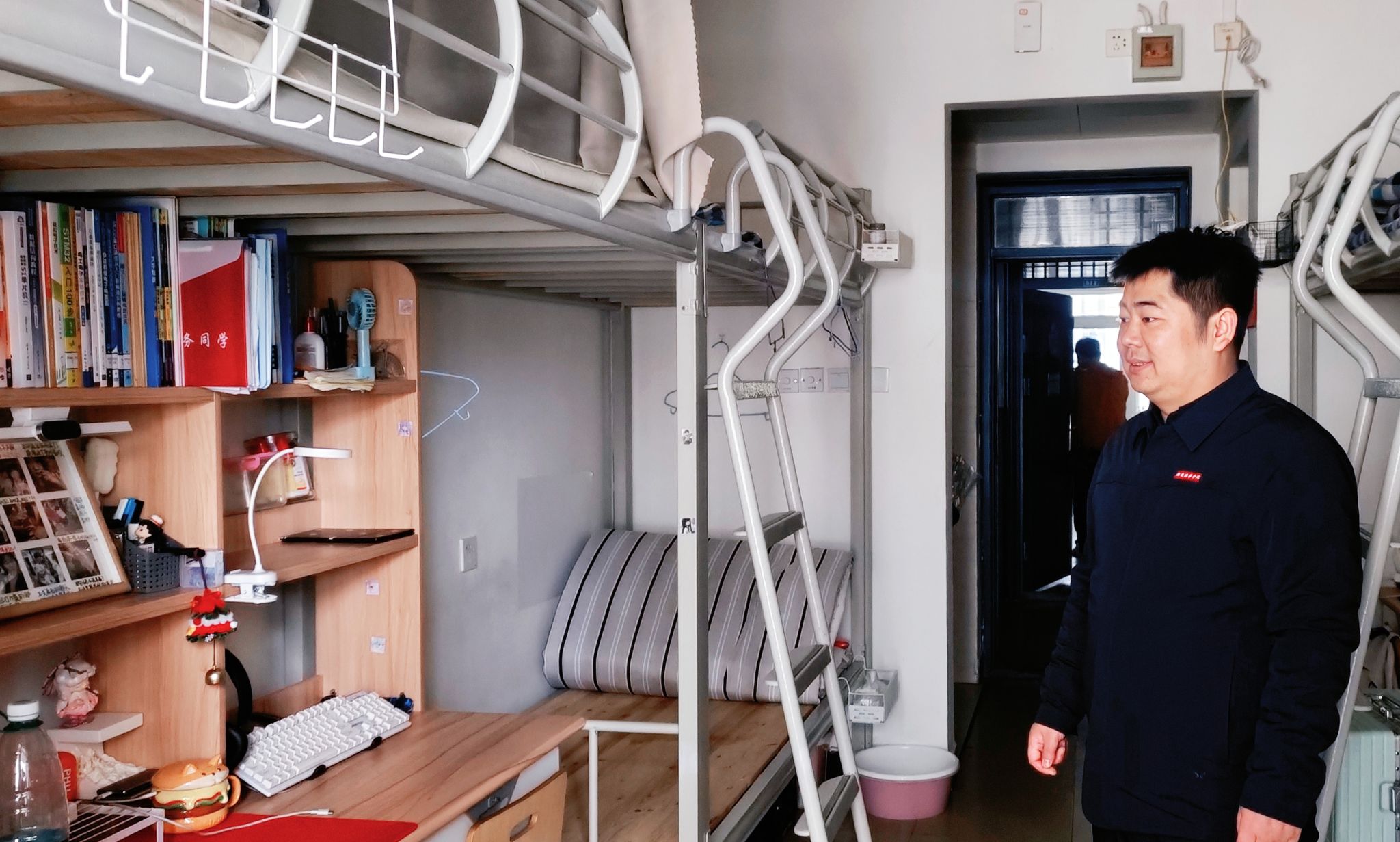 在学院领导的带领下,由辅导员组成的“暖心小分队”分为多组,对学院学生社区实施了“地毯式”健康检查。从天花板的墙角线至洗手台的水龙头,从阳台门窗的锁扣到暖气片的接口,教师们俯身查验暖气是否渗漏,伸手测试插座是否通电,甚至细致地摇晃每一张床铺的护栏,确保无一设施“带病运行”。