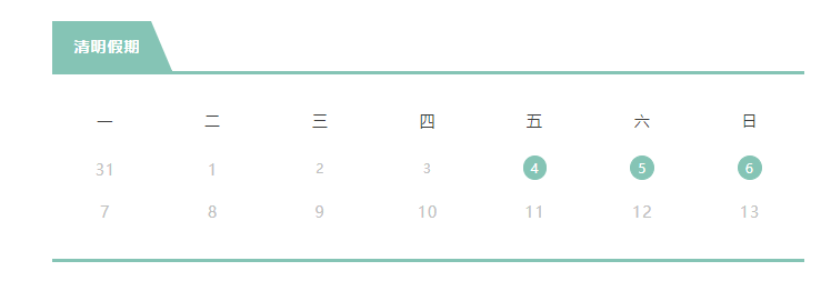 44日(星期五)至6日(星期日)放假,共3