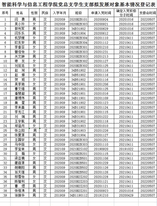 经支部委员会讨论,拟确定闫勇等39名同志为发展对象。根据发展党员工作有关要求,现将其有关情况公示。