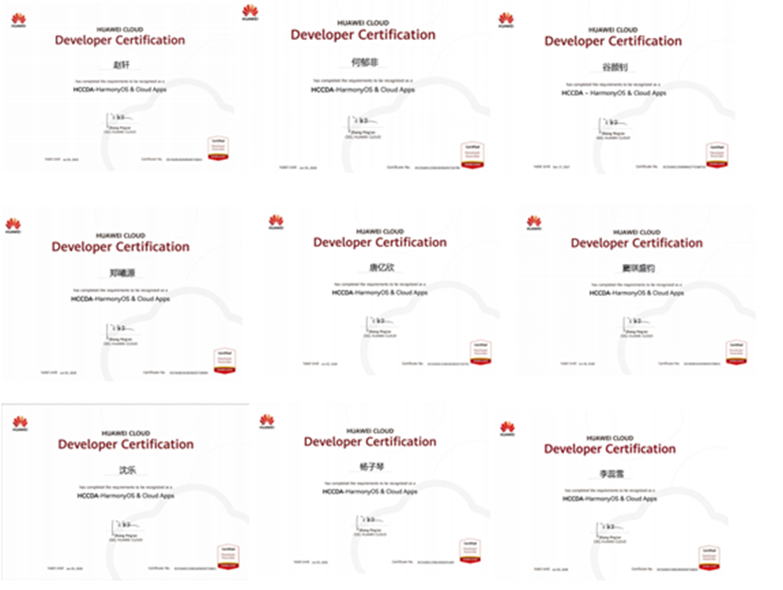 本专业与深圳市讯方技术股份有限公司校企合作共建鸿蒙人才培养项目,设立了鸿蒙移动应用开发、鸿蒙移动应用开发实验、鸿蒙系统架构等课程,由企业导师授课。通过共建鸿蒙实训中心,为学生提供全场景鸿蒙实训环境。目前为止,有60余名学生通过了鸿蒙HCCDA开发者认证考试。2024届有6名毕业生入职华为生态企业,平均年薪达15万。