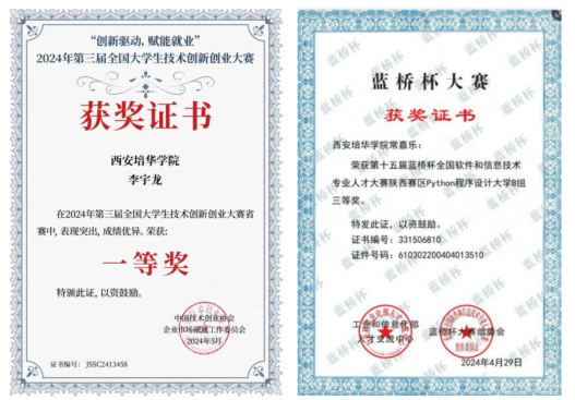 学生在校期间成果展示(部分)