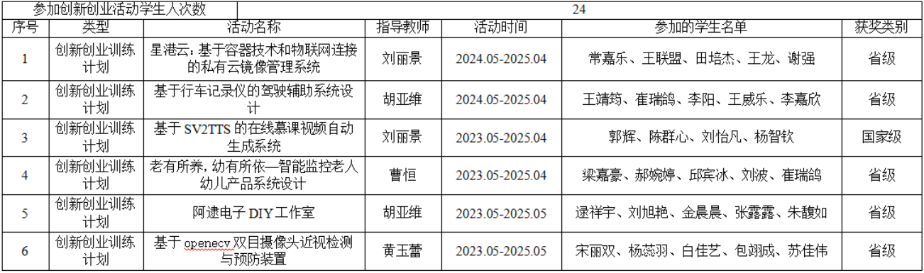 3.大学生创新创业训练计划:近3年国家级、省级立项6项