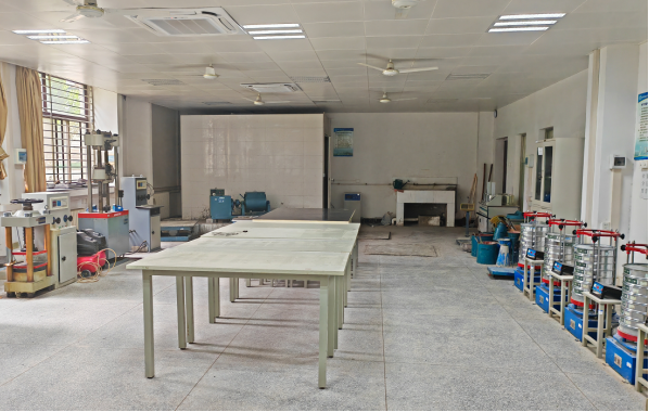 实验室主要设备:电动抗折实验机、水泥胶砂搅拌机、水泥净浆搅拌机、水泥胶砂振实台、恒温恒湿养护箱、水泥安定性煮沸箱、水泥比表面积测定仪、水泥负压筛分仪、水泥标准稠度及凝结时间测定仪。