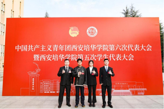 刘新同学(右一)参加西安培华学院团代会、学代会