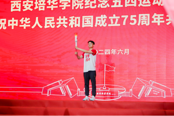 在西安培华学院纪念五四运动105周年、庆祝中华人民共和国成立75周年、共青团表彰大会暨火炬传递启动仪式上,陈天航作为最后一棒,用青春的火焰,骄傲地为自己在培华的学习生涯,“点燃”了一个圆满的句号。