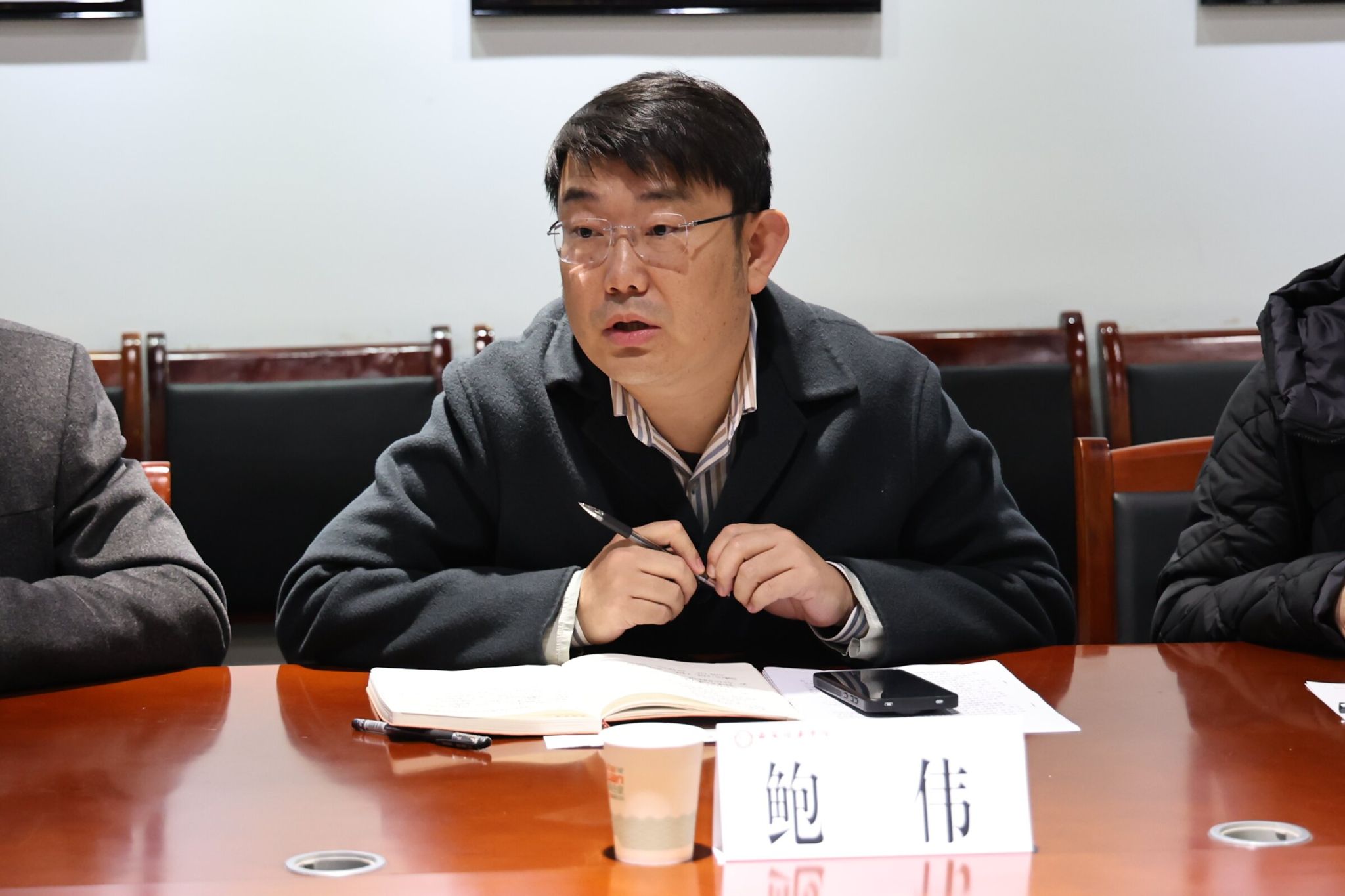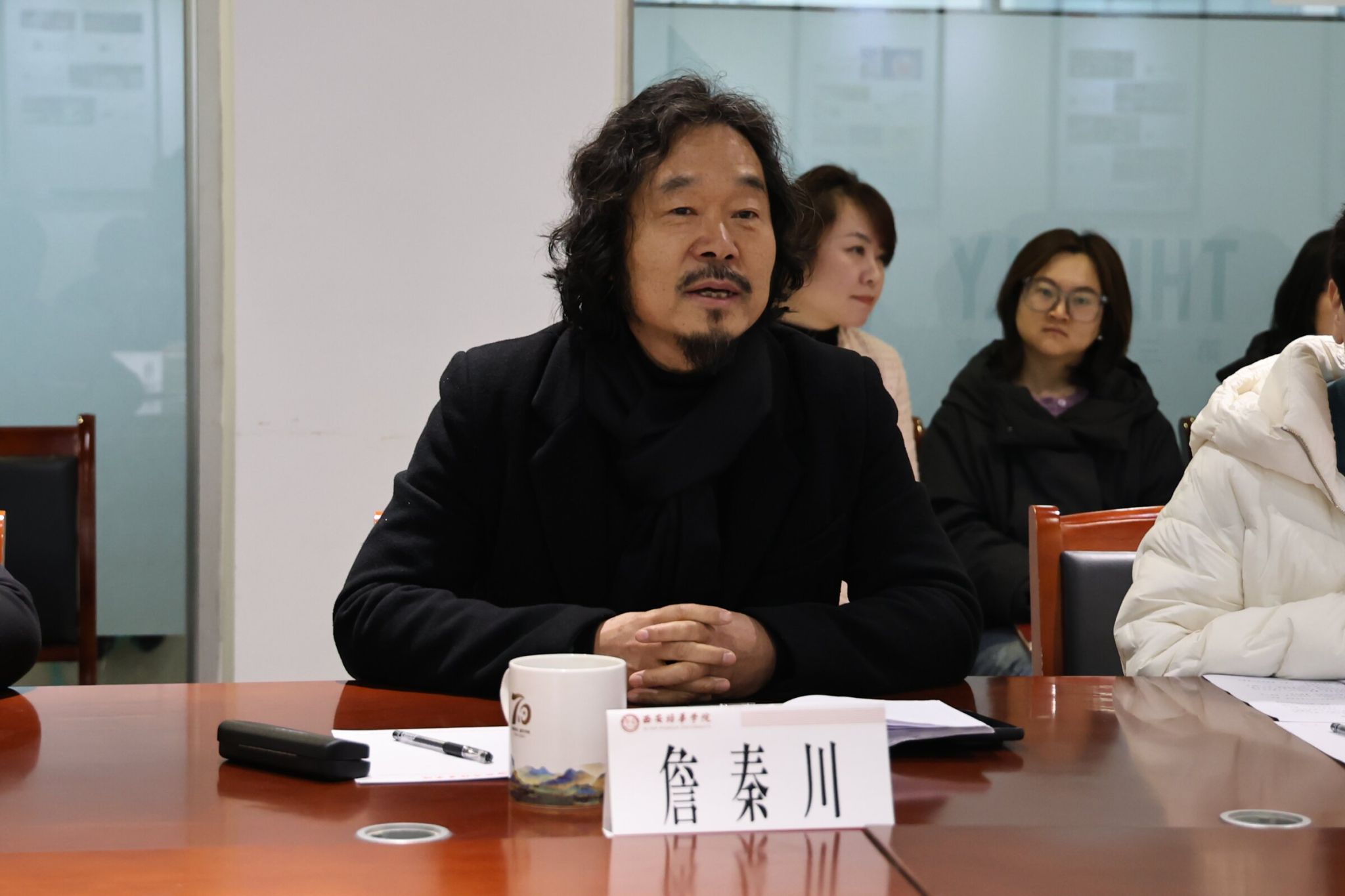 最后,副校长姜瀛初聚焦产教融合与科研突破。他要求学院推动校企合作从挂牌向实质性项目转变,充分利用各类平台,积极争取国家社科基金艺术学项目突破,并加强科研团队建设,补齐科研短板。同时,学院要围绕学校申硕一号工程,夯实学科基础,明确设计学申硕方向的攻坚目标,要结合地方需求、学科交叉和应用型定位。他提出,要大力推进硕士研究生联合培养,加强教师指导硕士经验积累;同时注重科研项目体量,探索大文科学院科研协作的途径。姜校长还鼓励学院引进青年博士和学科带头人,推动学科交叉融合,提升服务地方能力,为学校发展贡献更大力量。