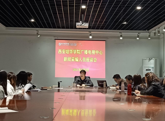 4月2日在汇知楼第三会议室召开了西安培华学院广播电视中心新闻采编人员座谈会,共同探讨了未来校园广播台、校园电视台的发展问题。传媒学院院长杜耀峰、常务副院长王西娅,西安培华学院党委宣传部部长柳雨,传媒学院党委副书记高嘉炜,西安培华学院广播电视中心负责人贾登银,传媒学院实验中心主任赵继昌、部分学生代表参加了此次会议。