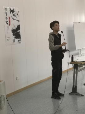 活动伊始,隆重介绍了此次活动的特邀嘉宾——陕西省硬笔书法家协会秘书长徐云扬先生。这位出生于1993年的青年才俊,身上有着文人特有的书香气息,他清澈的眼神中透露着他对汉字和中国文化的情有独钟。每天写字已经成为他生活的一部分,除此,他热爱古琴、太极拳,学习诗词。在沙龙活动中,他为在场大学生展现了中国传统文化的魅力和自信。