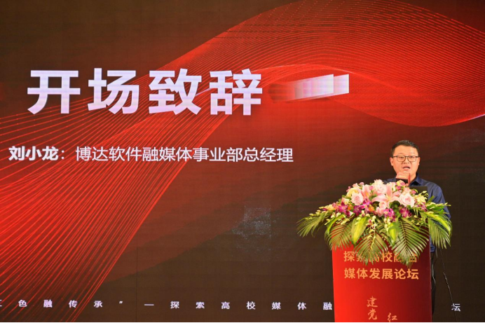 本次论坛共分为开幕式、特邀报告和圆桌论坛三个部分。博达软件融媒体事业部总经理刘小龙致辞中讲到,博达软件作为5G时代全媒体数字内容智能服务专家,被评价为“最懂高校宣传部业务的融媒体解决方案”,并为大家分享了博达融媒体解决方案。