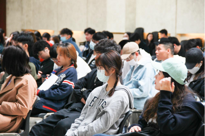 4月27日下午,西安永兴坊文化发展有限公司总经理段晓玉、陕西省非物质文化遗产产业联盟副秘书长王雅萍、永兴坊策划部副总监高昆、永兴坊新媒体运营总监范凡进行非遗文化传承赛道宣讲会,传媒学院常务副院长王西娅、教学副院长赵伟及报名参赛的200余学生全程参与。