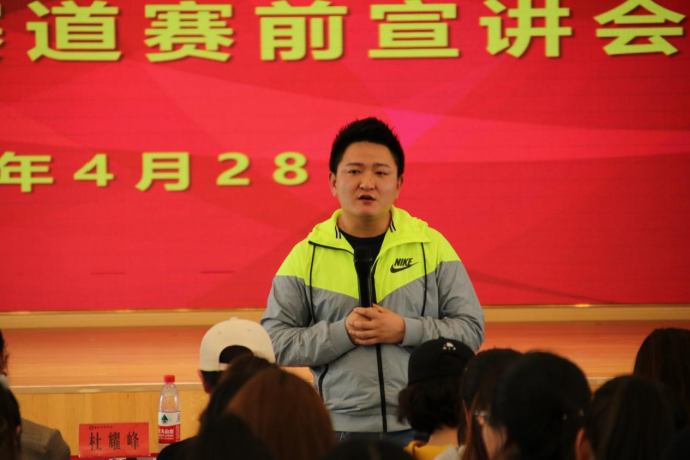 4月28日下午西安朝夕信息科技有限公司总经理储振福、外链合作负责人锁鑫丞、招聘经理张艳进行创业创业赛道宣讲会,传媒学院常务副院长王西娅、教学副院长赵伟、院长助理张荣花及报名参赛的学生300人参加宣讲会。